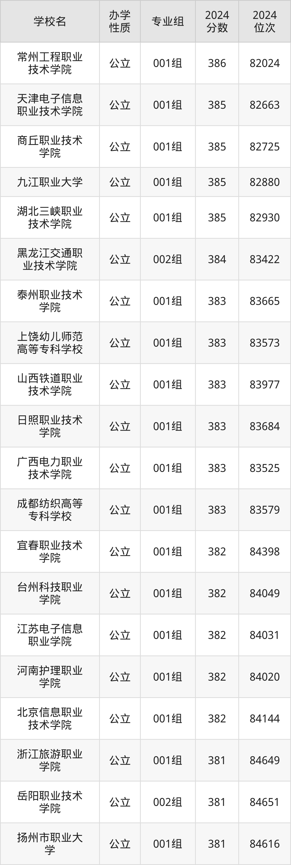 | 常州工程职业 技术学院 | 001组 | 386 | 82024 |