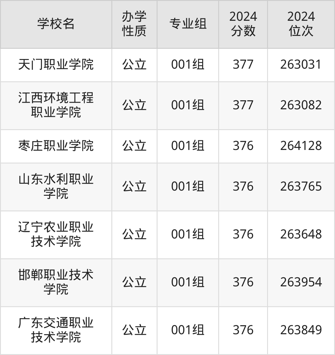 | 山东水利职业 学院 | 001组 | 376 | 263765 |