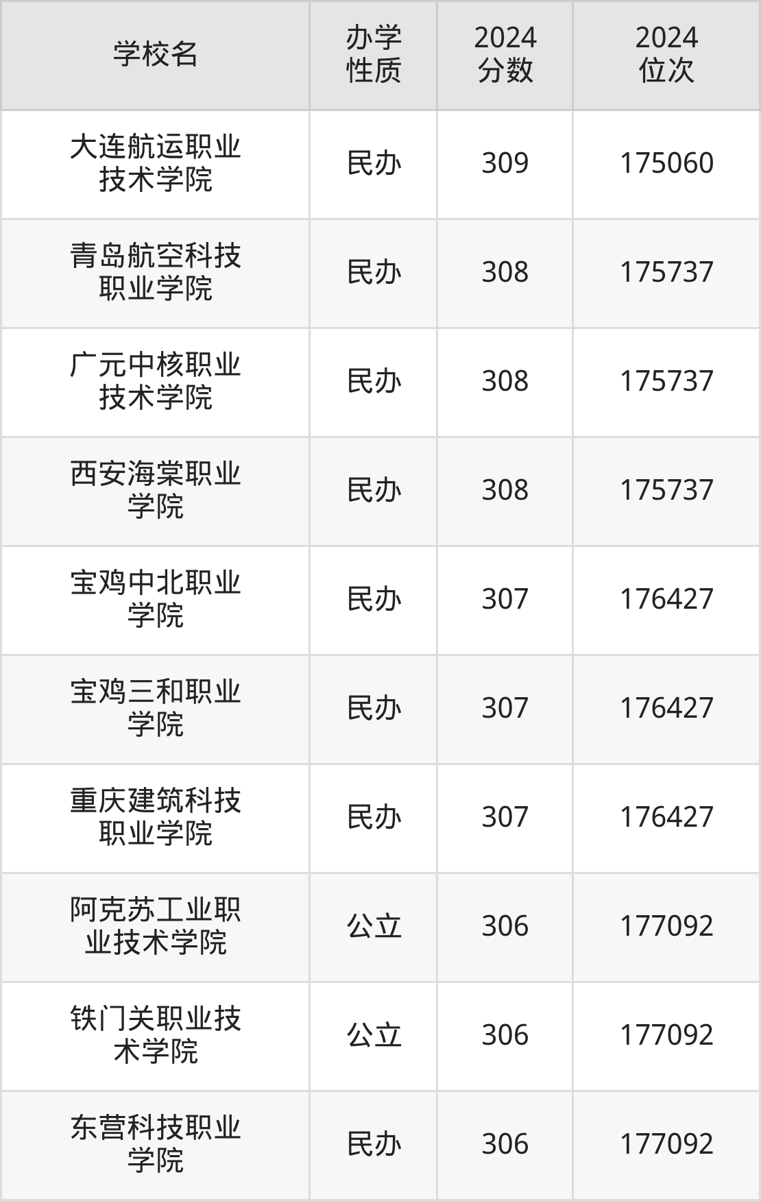 | 大连航运职业 技术学院 | 309 | 175060 |