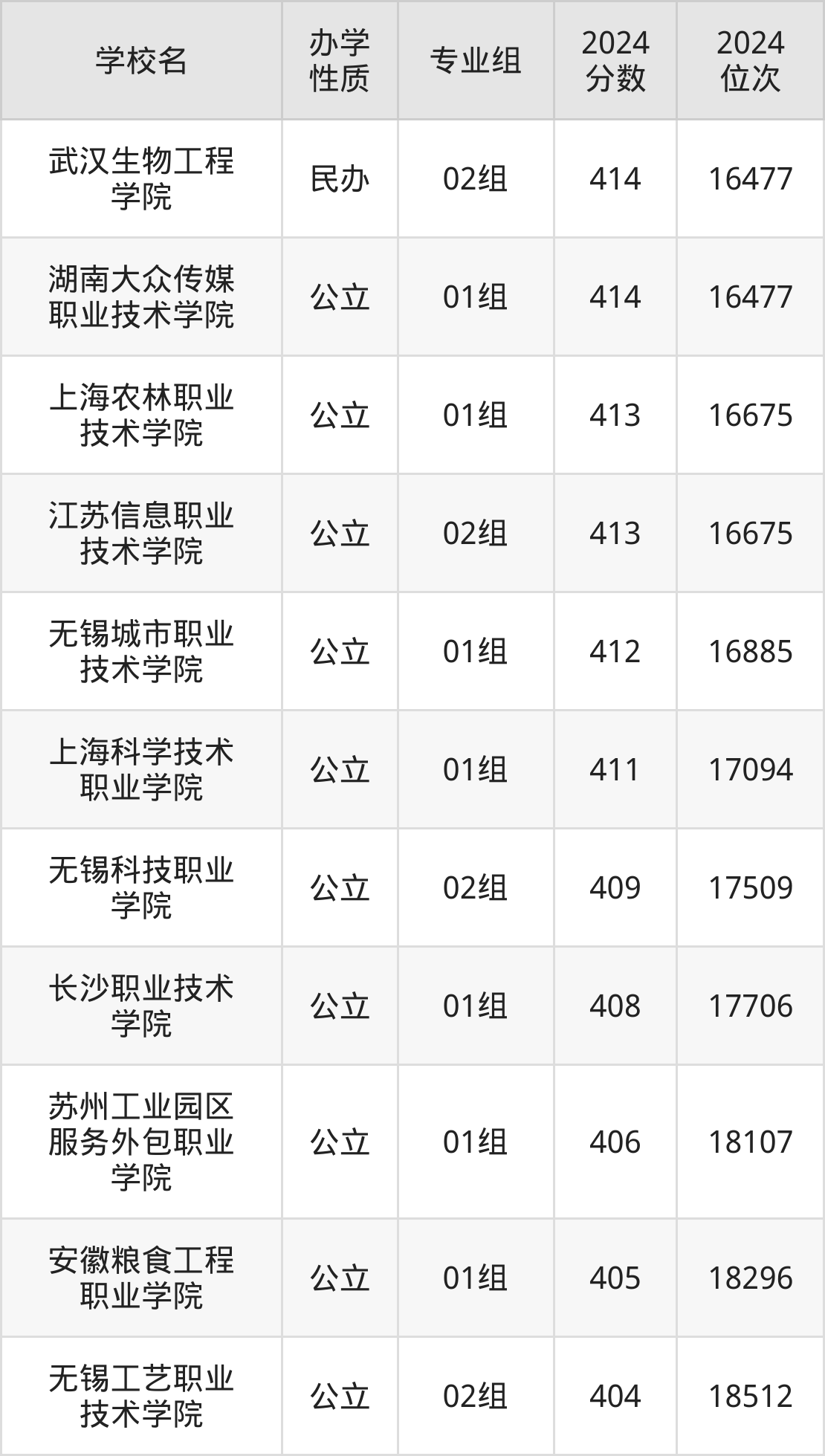 江苏409分左右的考生可以上武汉生物工程学院、湖南大众传媒职业技术学院、上海农林职业技术学院等院校,刚好在409分的院校有无锡科技职业学院。