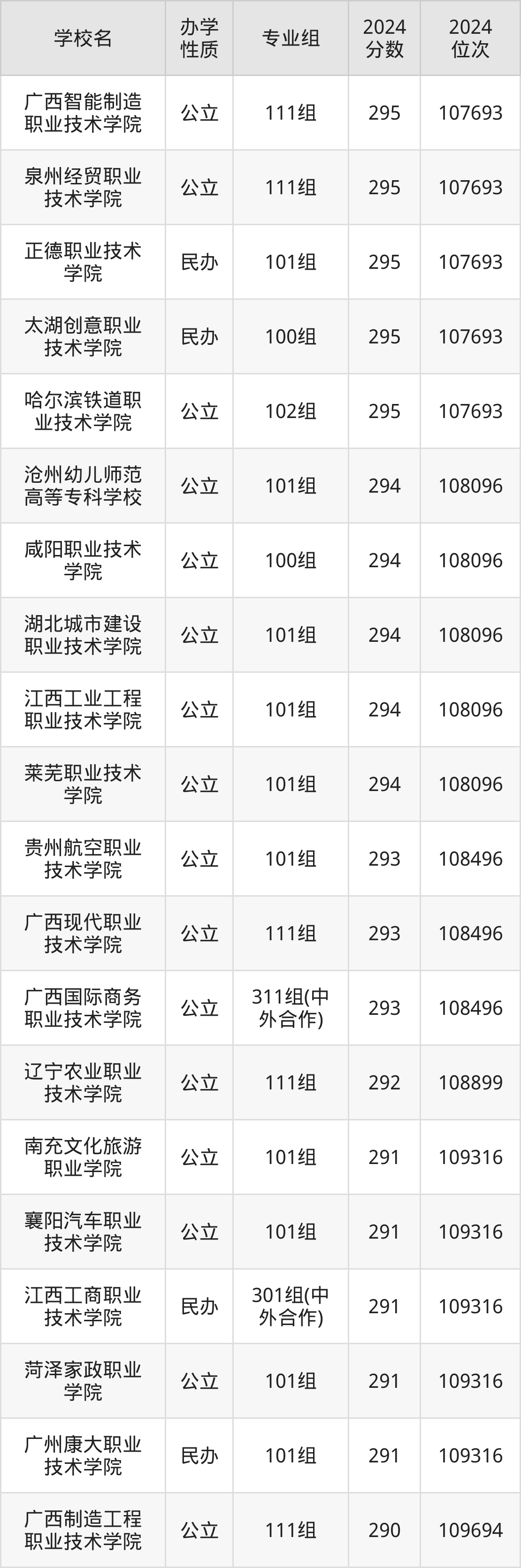 | 广西制造工程 职业技术学院 | 111组 | 290 | 109694 |
