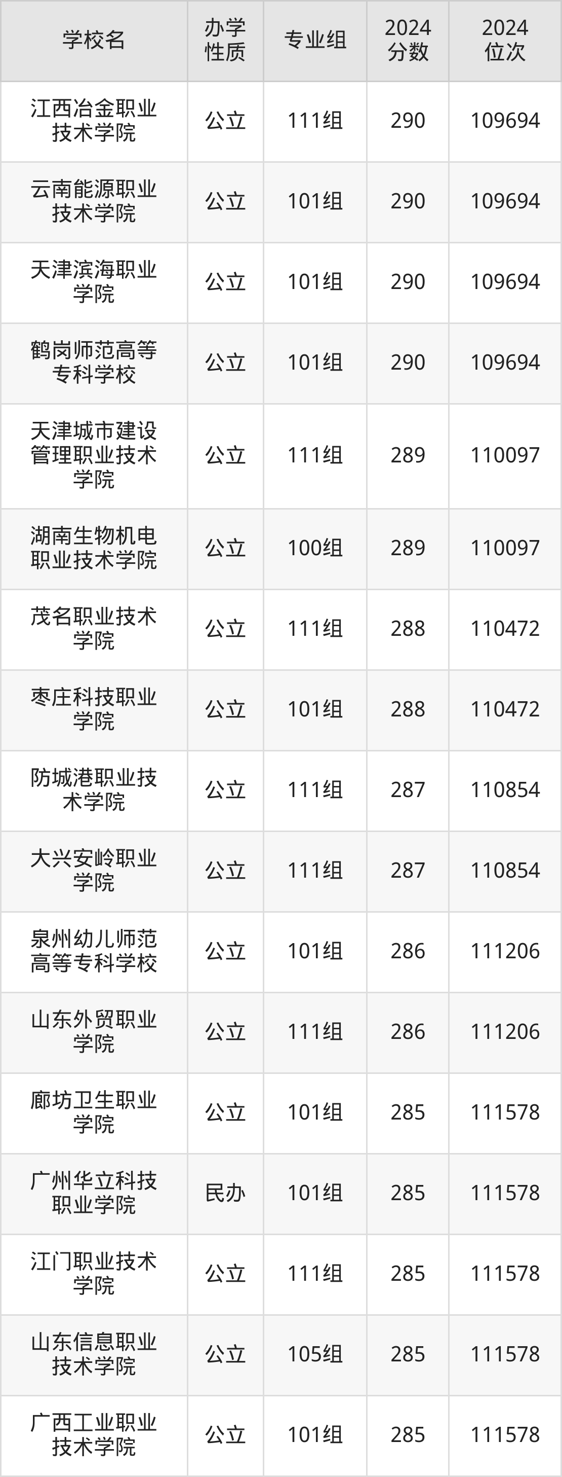 | 山东信息职业 技术学院 | 105组 | 285 | 111578 |