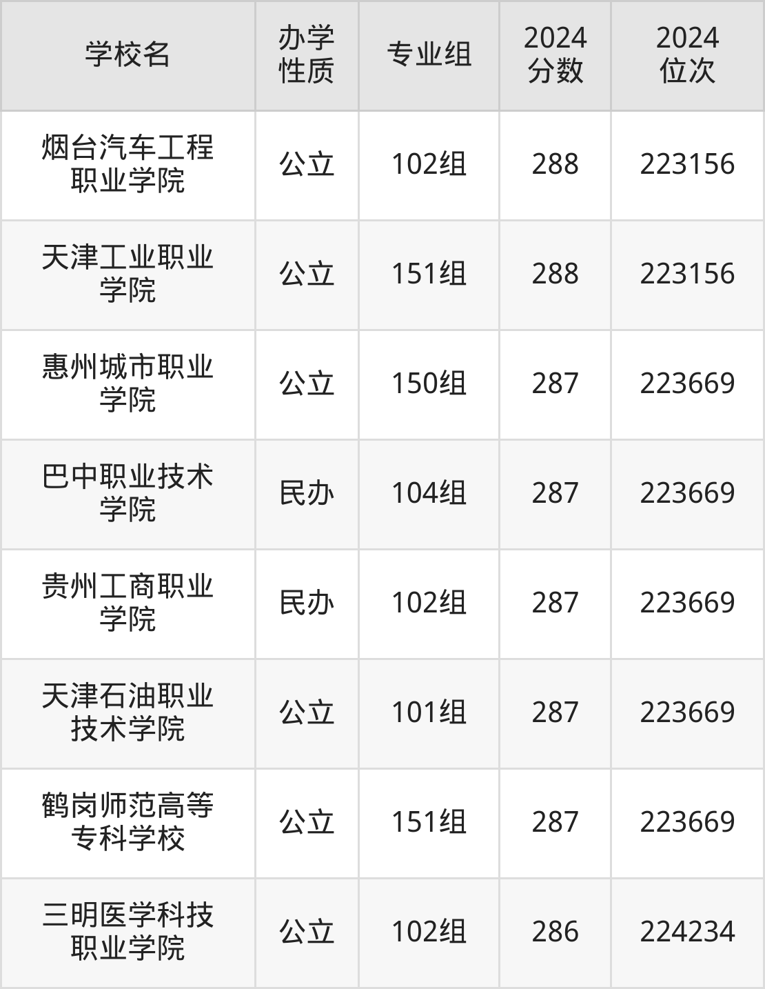 | 天津工业职业 学院 | 151组 | 288 | 223156 |