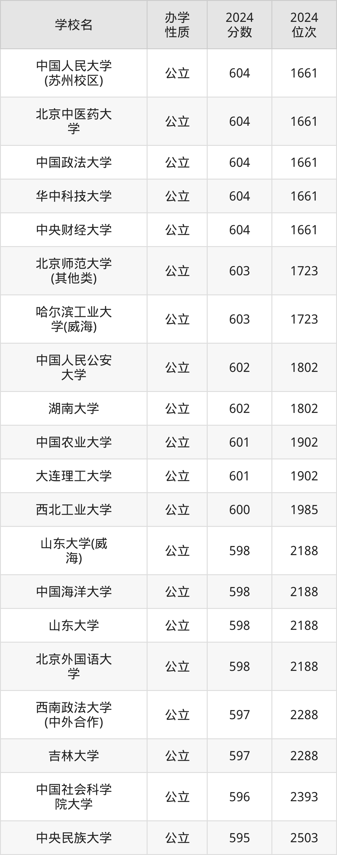 | 中国人民大学 (苏州校区) | 604 | 1661 |
