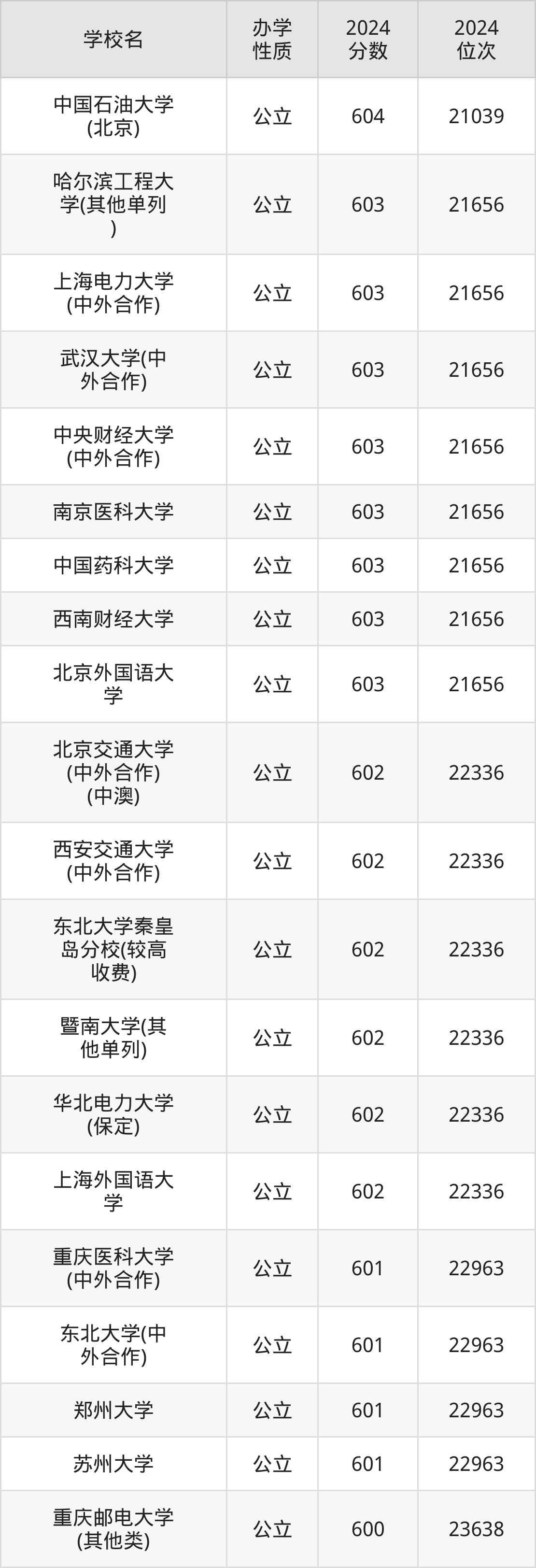 河南599分左右的考生可以上中国石油大学(北京)、哈尔滨工程大学(其他单列)、上海电力大学(中外合作)等院校,刚好在599分的院校有北京交通大学(中外合作)(中加)、杭州电子科技大学、北京中医药大学等。