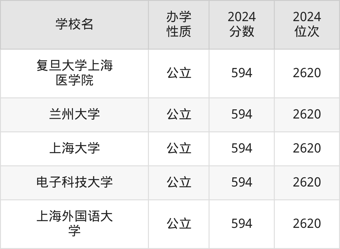 | 复旦大学上海 医学院 | 594 | 2620 |
