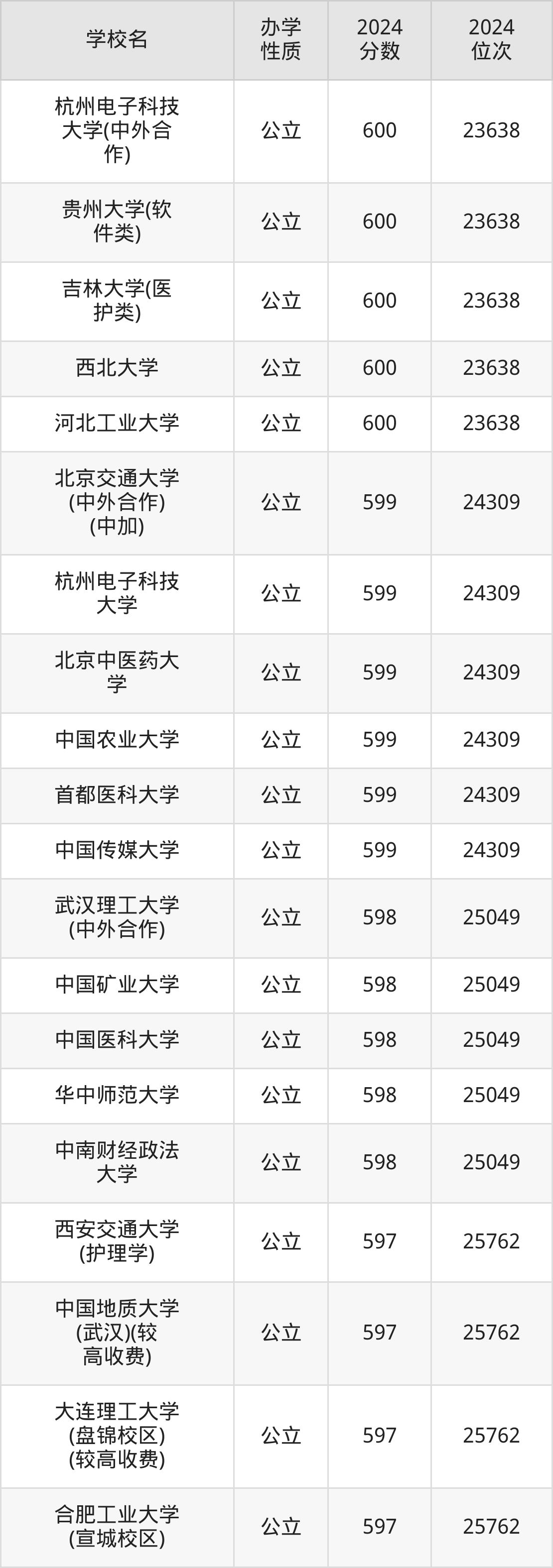 2024年河南理科599分考生能上中国农业大学、西北农林科技大学2所985院校,具体录取分数线及位次为: