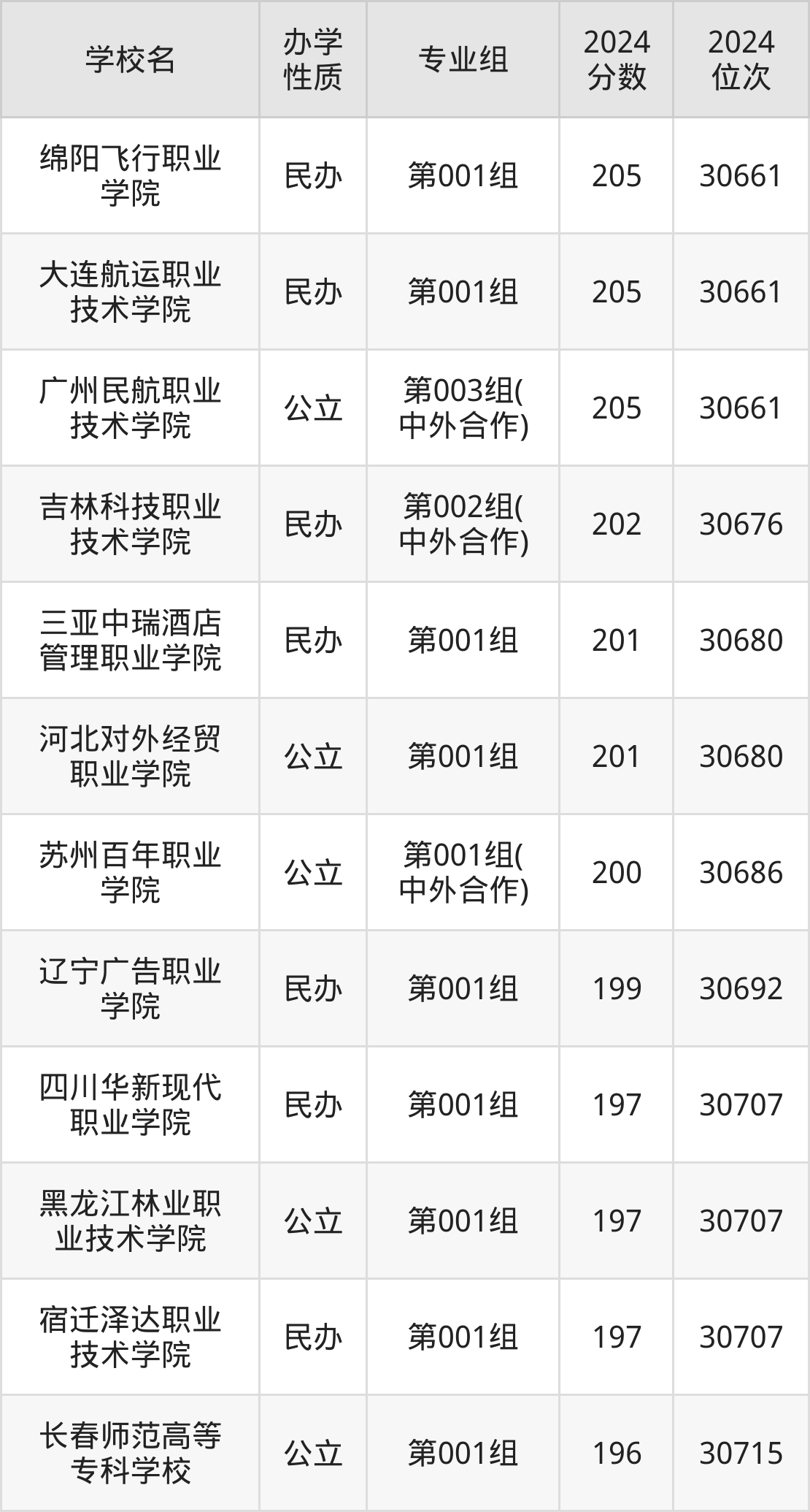 | 吉林科技职业 技术学院 | 第002组( 中外合作) | 202 | 30676 |