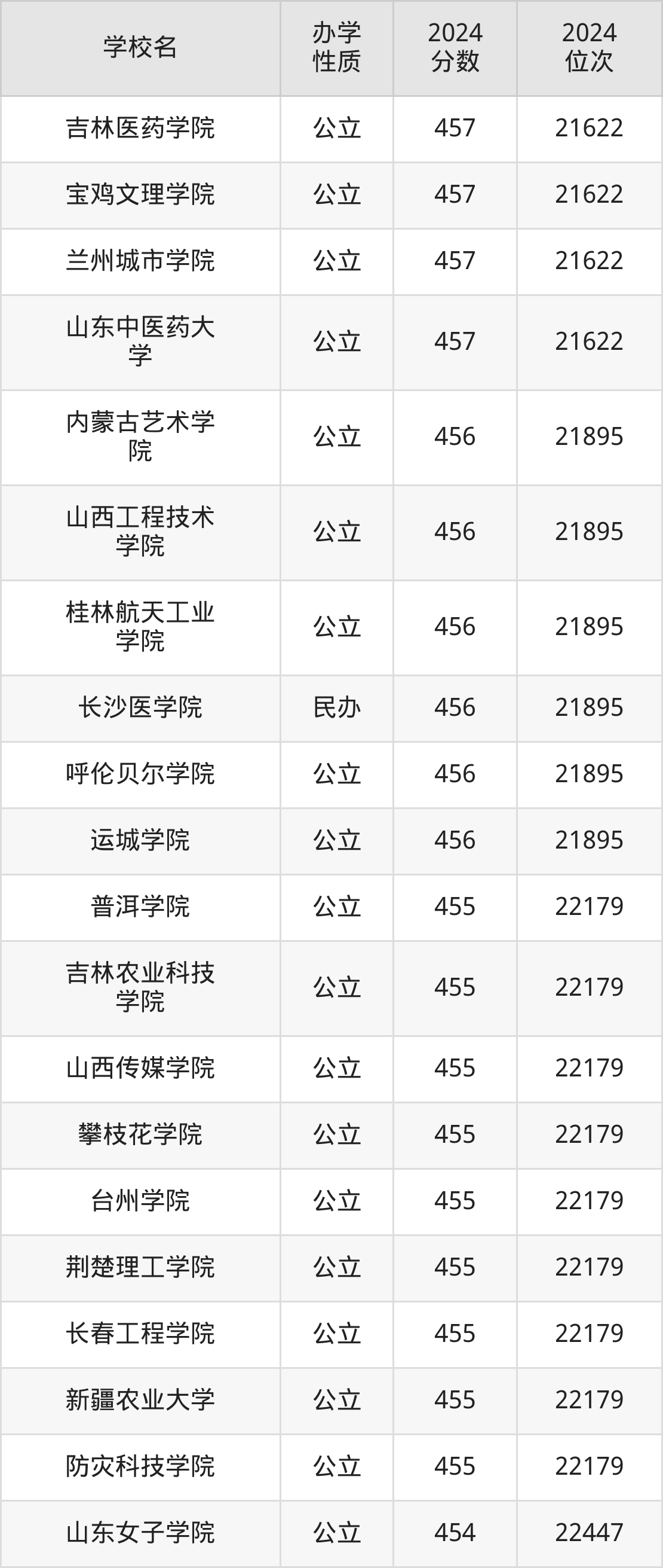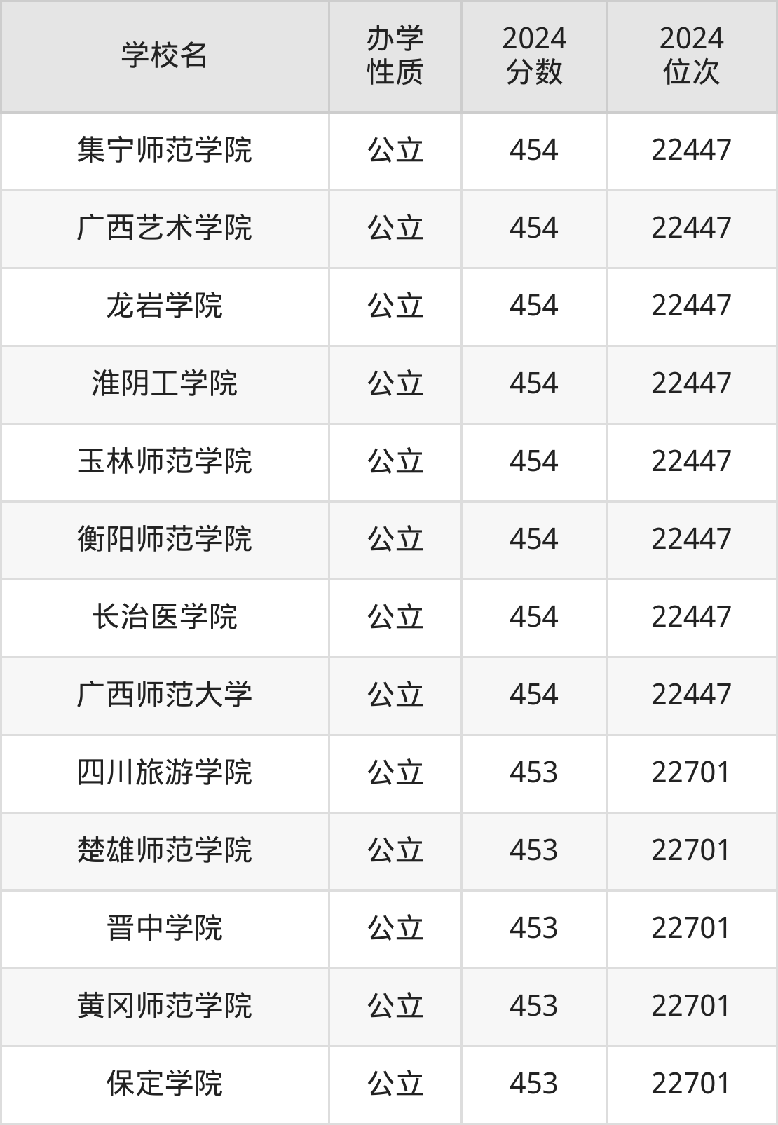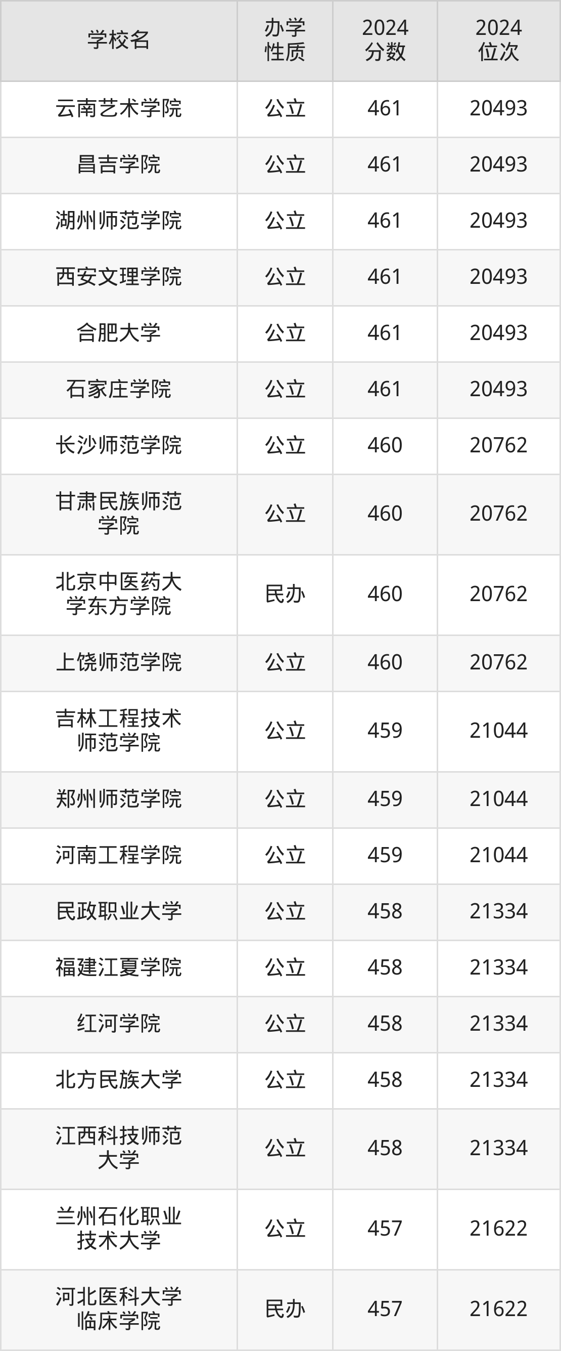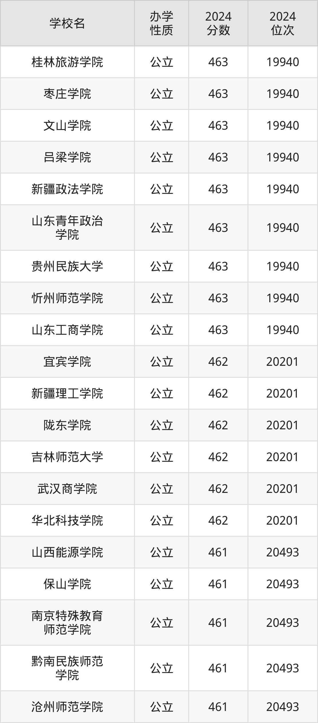 2024年山西文科458分考生能上桂林旅游学院、枣庄学院、文山学院、吕梁学院、新疆政法学院等73所二本院校,具体录取分数线及位次为:
