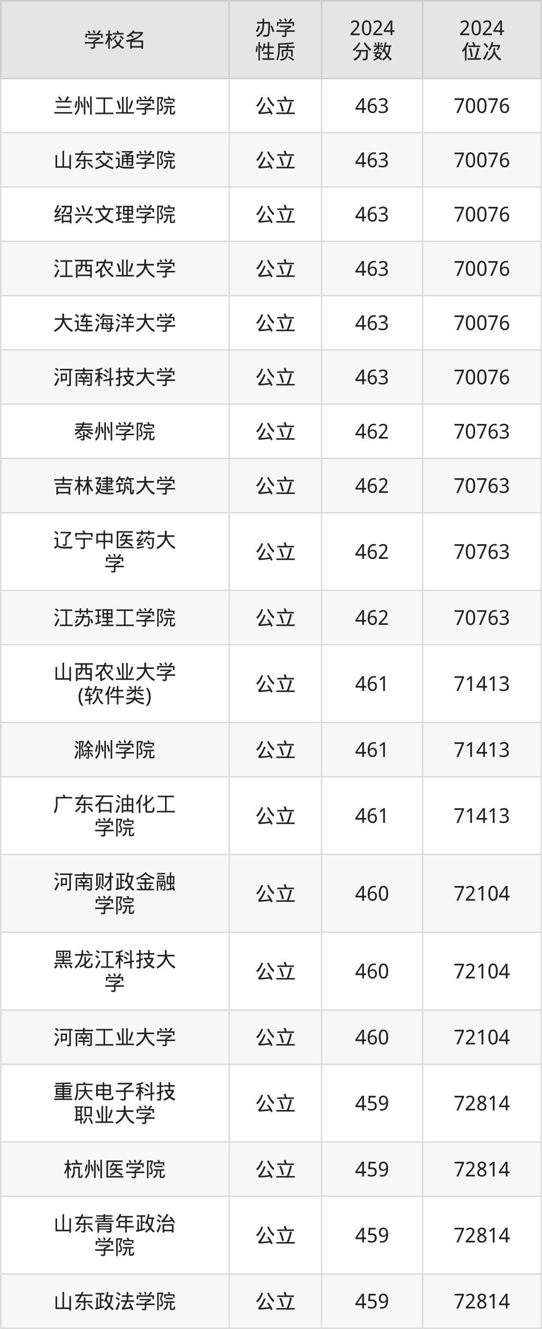 2024年山西理科458分考生能上兰州工业学院、山东交通学院、绍兴文理学院、江西农业大学、大连海洋大学等65所二本院校,具体录取分数线及位次为:
