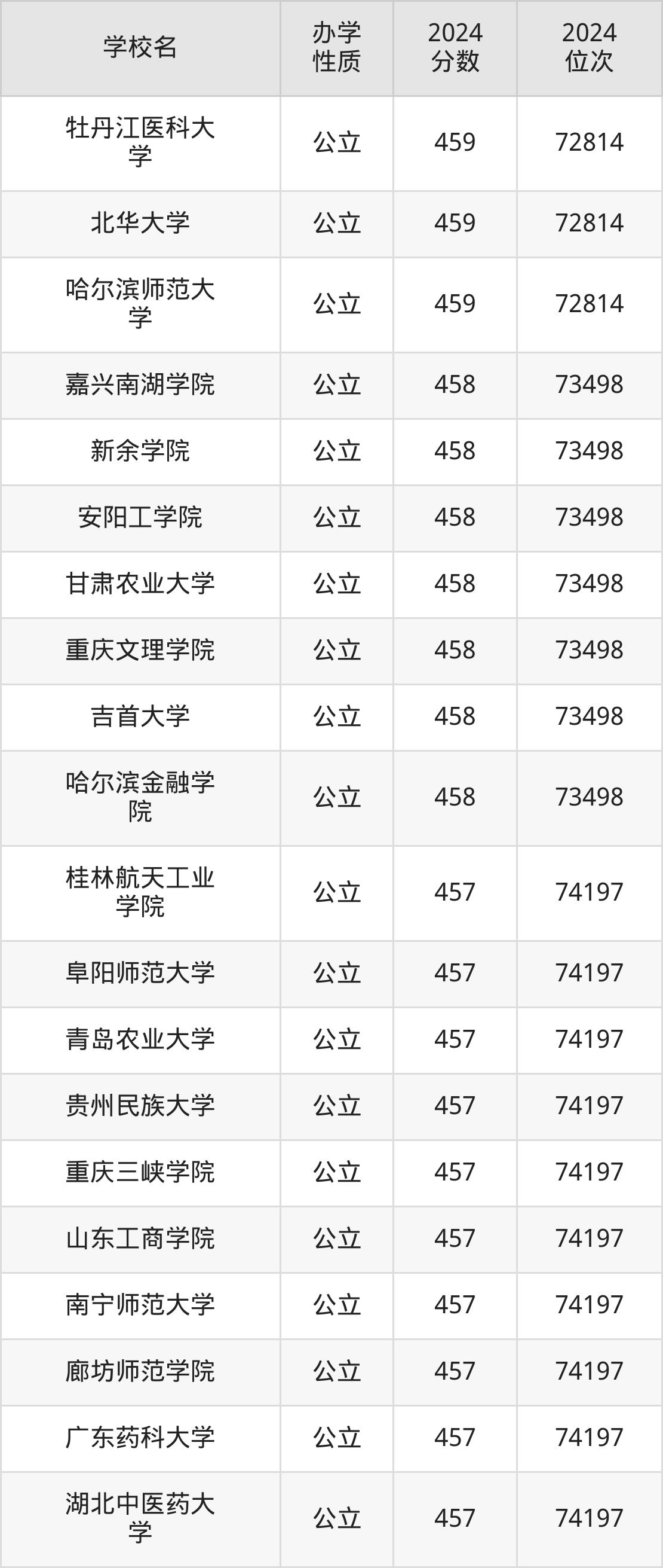 | 哈尔滨师范大 学 | 459 | 72814 |