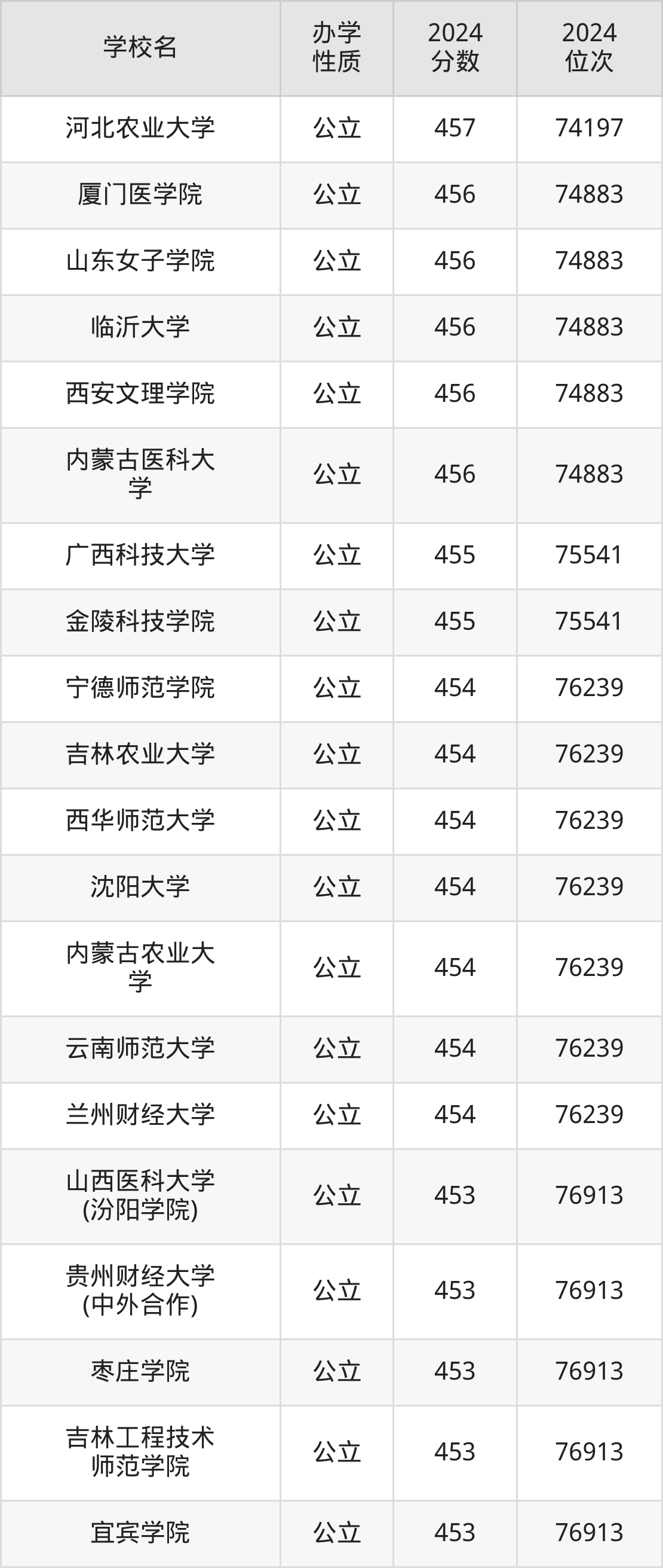 | 山西医科大学 (汾阳学院) | 453 | 76913 |