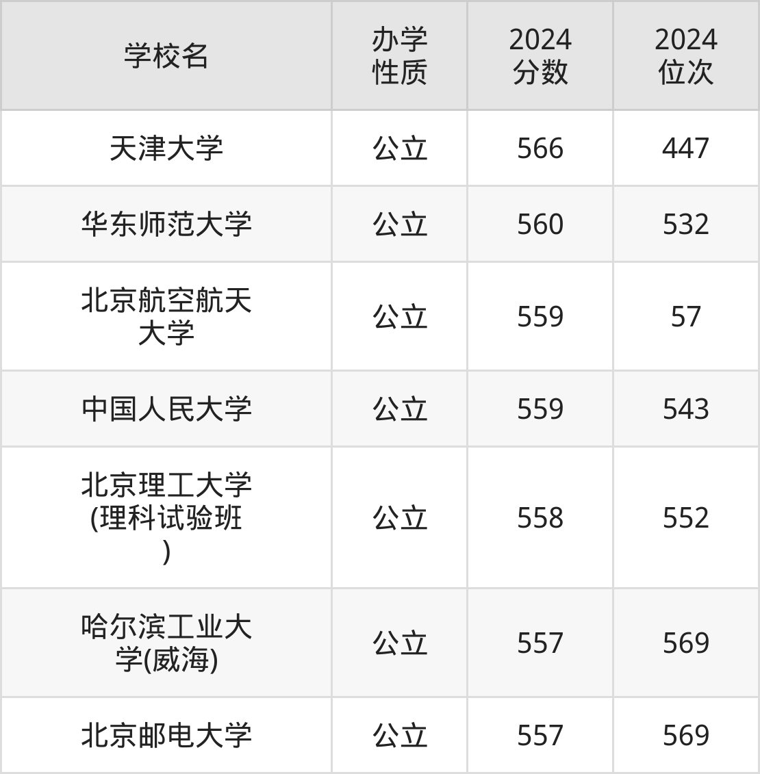 | 哈尔滨工业大 学(威海) | 557 | 569 |