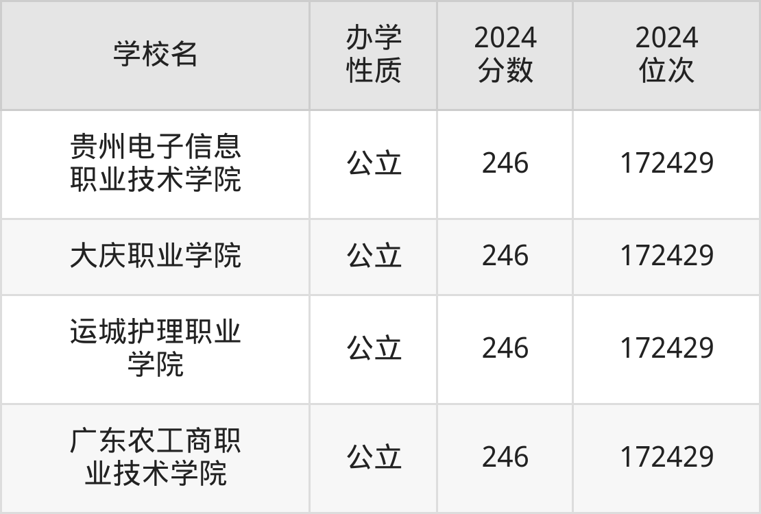 | 贵州电子信息 职业技术学院 | 246 | 172429 |