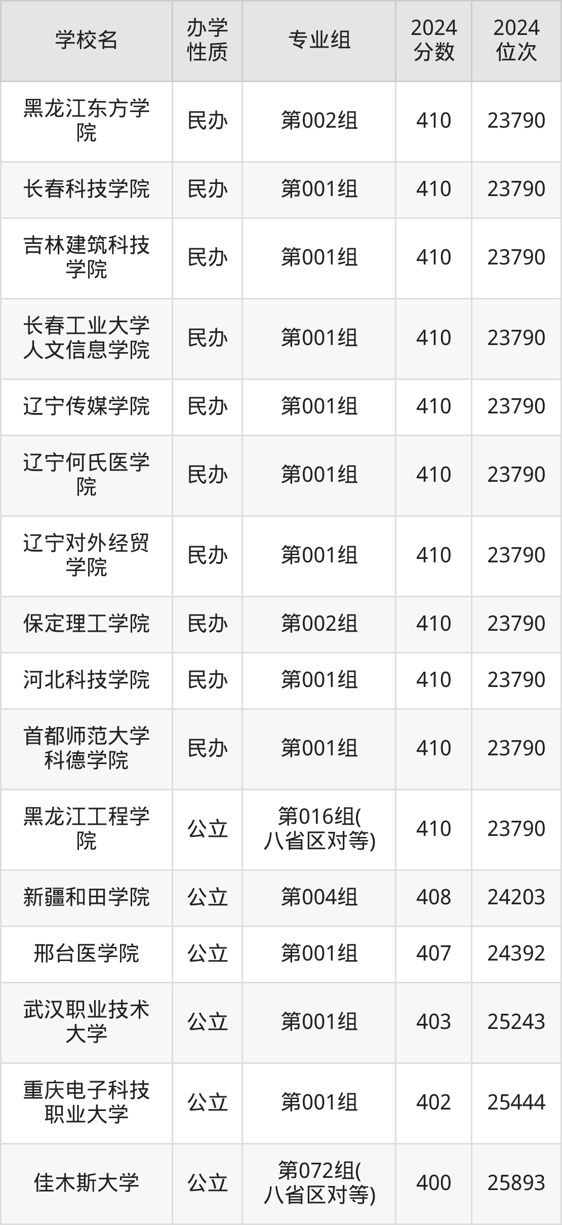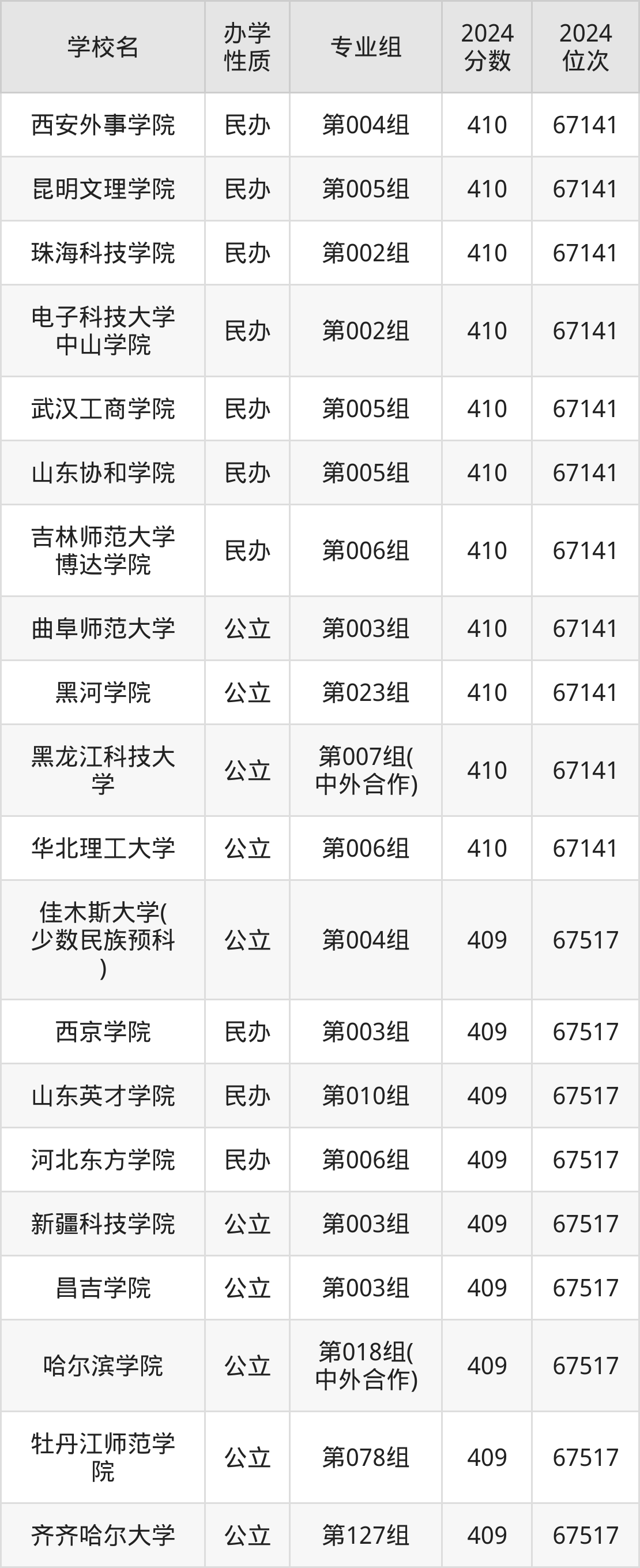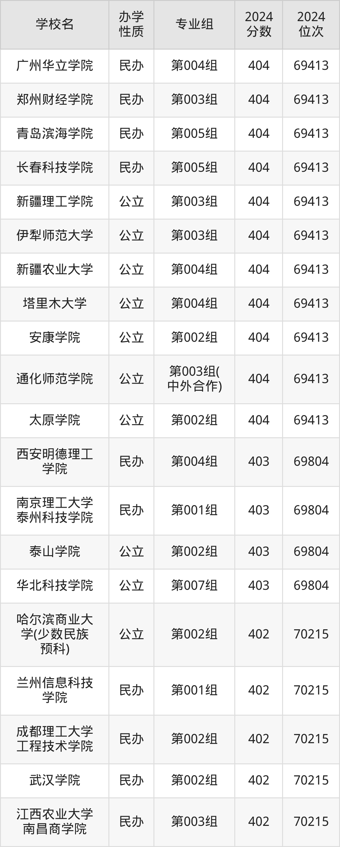 | 学校名 | 专业组 | 2024 分数 | 2024 位次 |