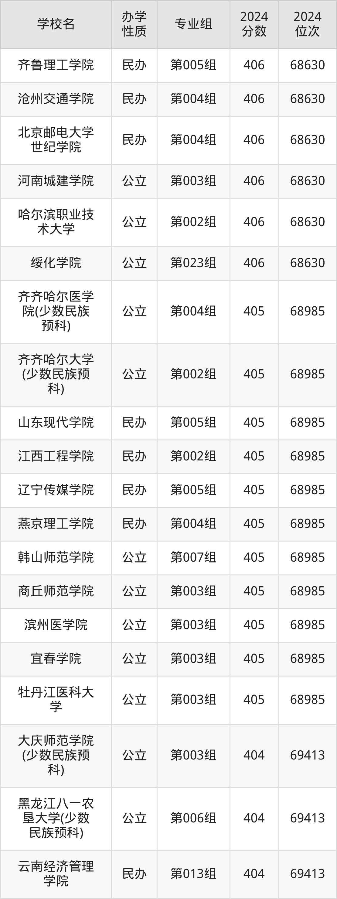 | 齐齐哈尔医学 院(少数民族 预科) | 第004组 | 405 | 68985 |