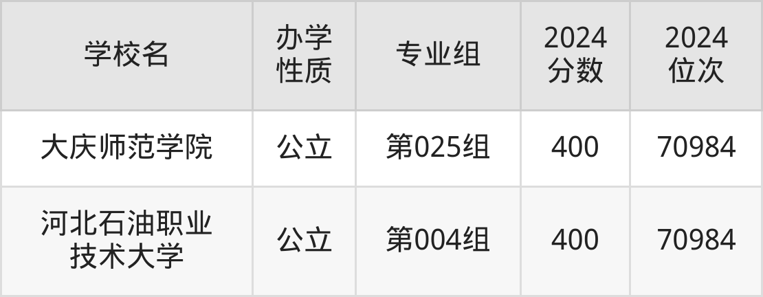 | 大庆师范学院 | 第025组 | 400 | 70984 |