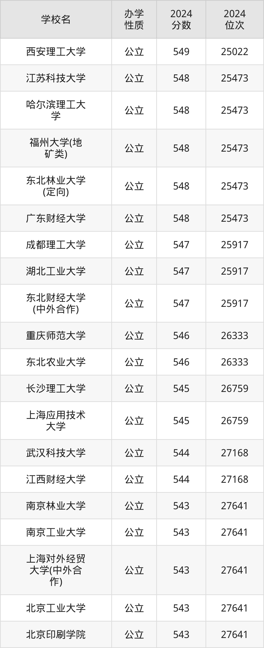 2024年云南理科544分考生能上西安理工大学、江苏科技大学、哈尔滨理工大学、福州大学(地矿类)、东北林业大学(定向)等39所一本院校,具体录取分数线及位次为: