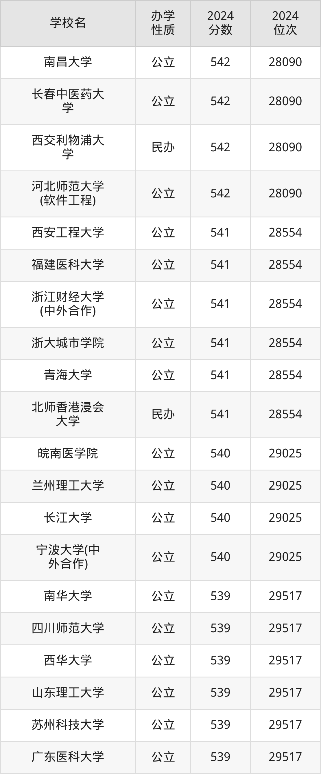 | 宁波大学(中 外合作) | 540 | 29025 |