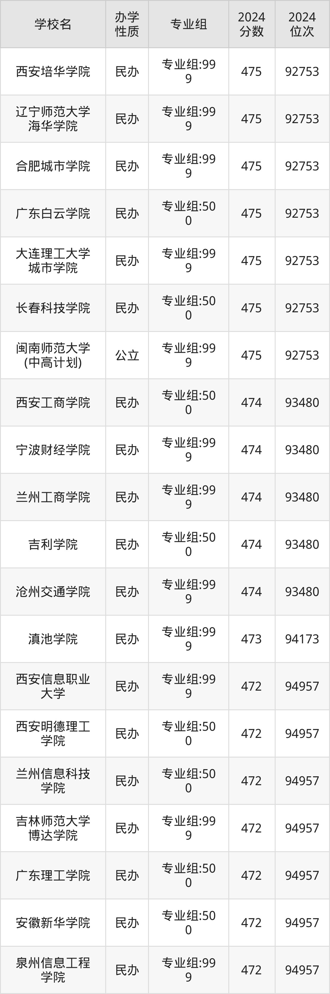 | 广东白云学院 | 专业组:50 0 | 475 | 92753 |