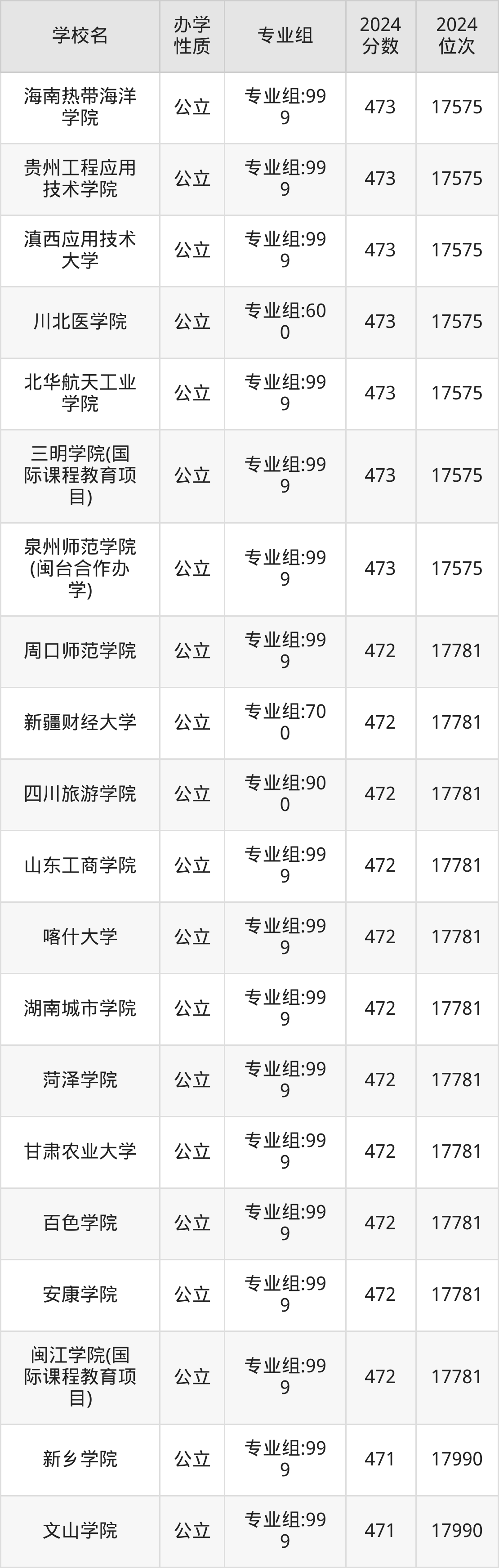 | 滇西应用技术 大学 | 专业组:99 9 | 473 | 17575 |