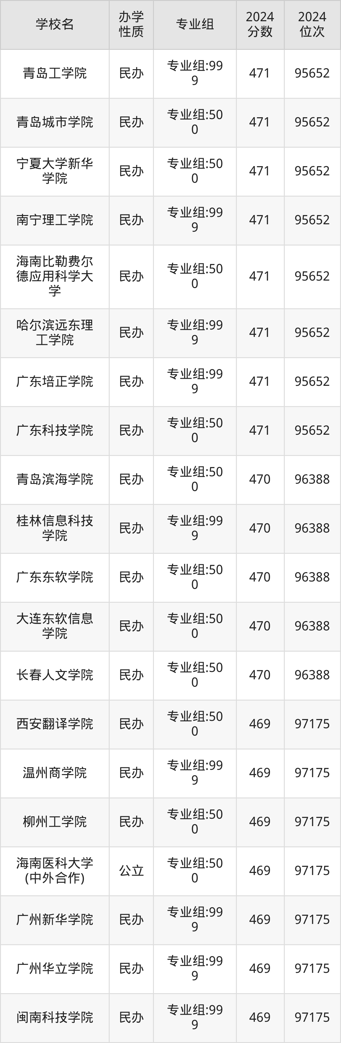 | 广东东软学院 | 专业组:50 0 | 470 | 96388 |