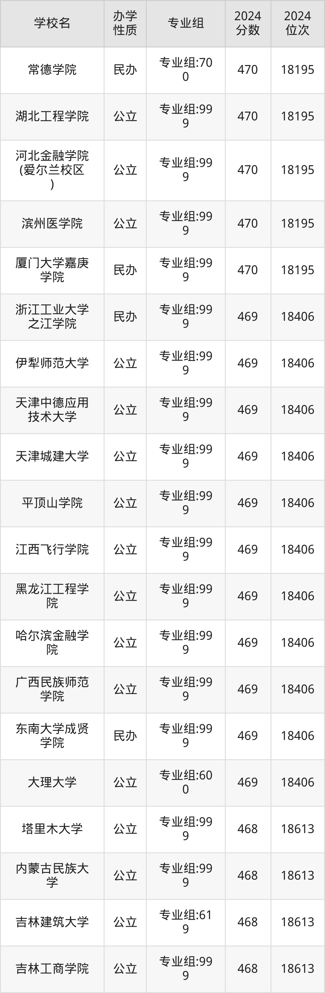 | 学校名 | 专业组 | 2024 分数 | 2024 位次 |