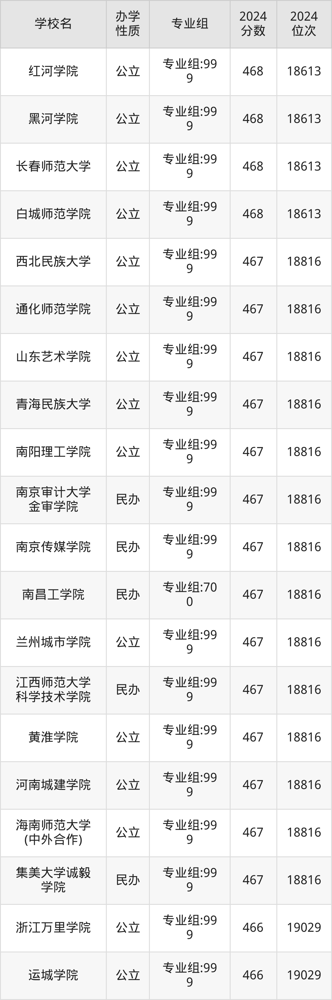 | 白城师范学院 | 专业组:99 9 | 468 | 18613 |