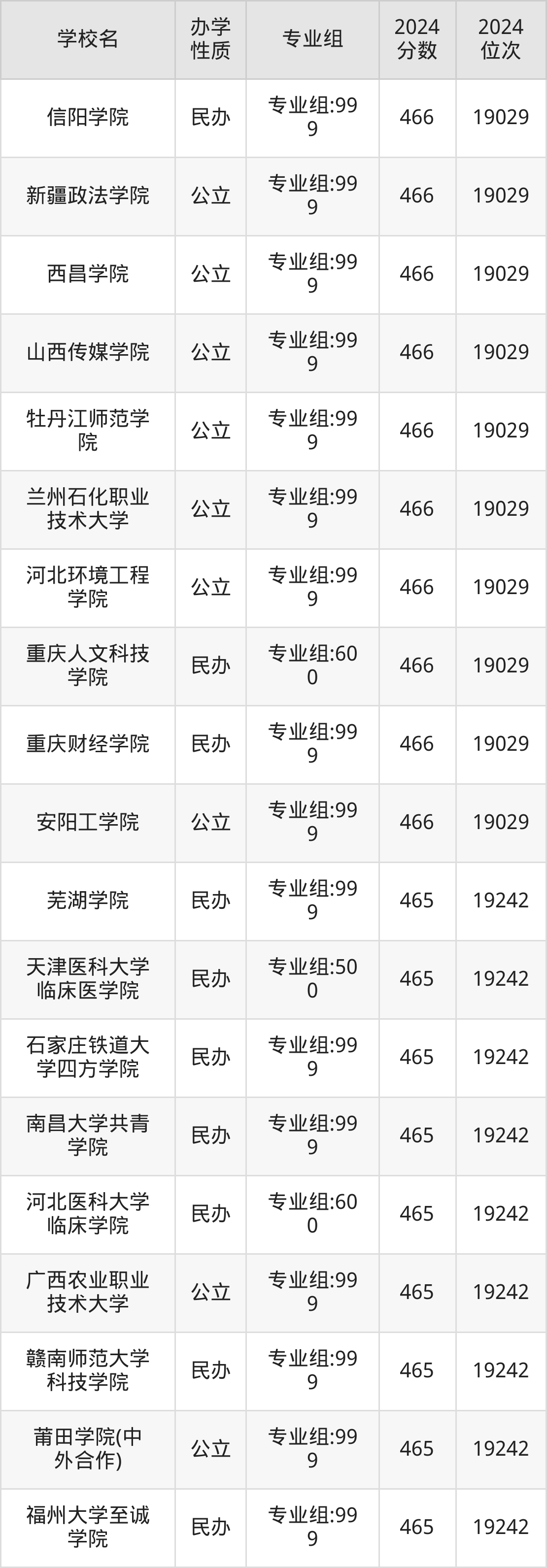 | 南昌医学院 | 专业组:99 9 | 466 | 19029 |