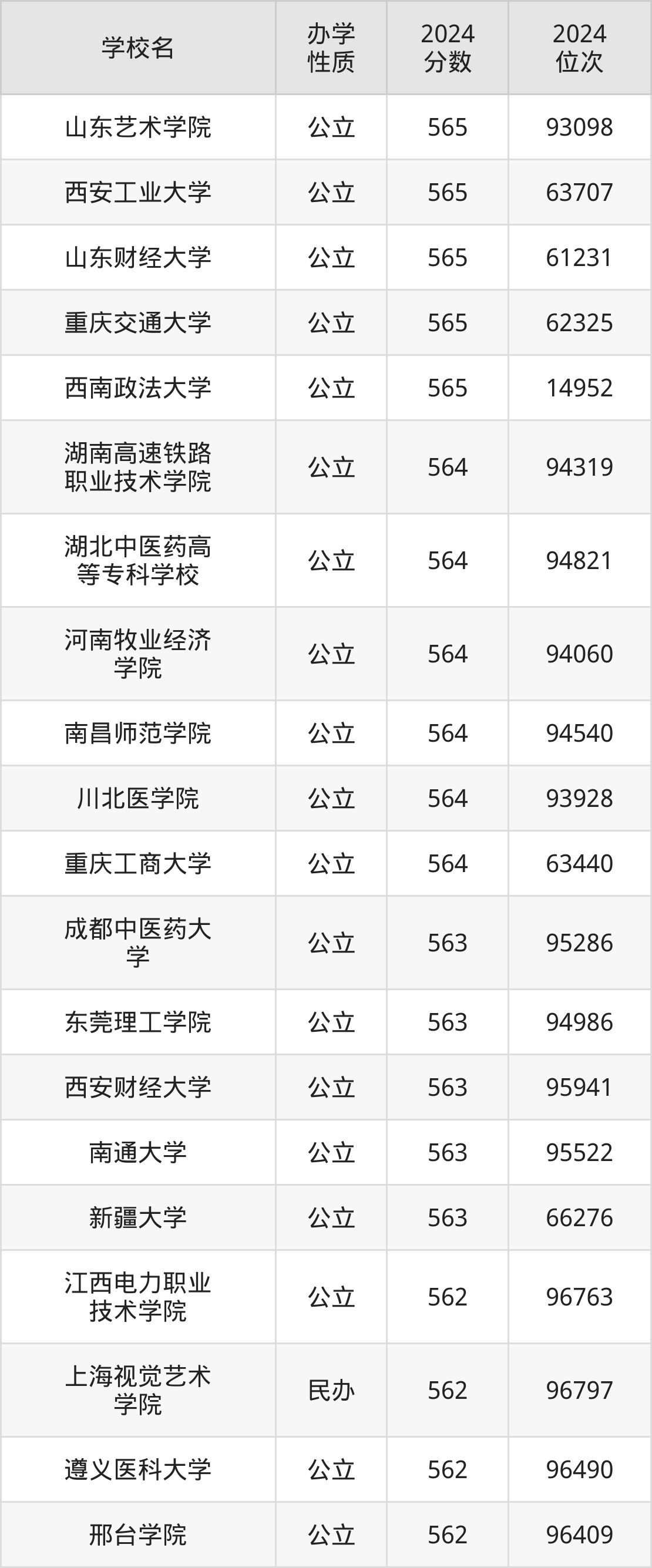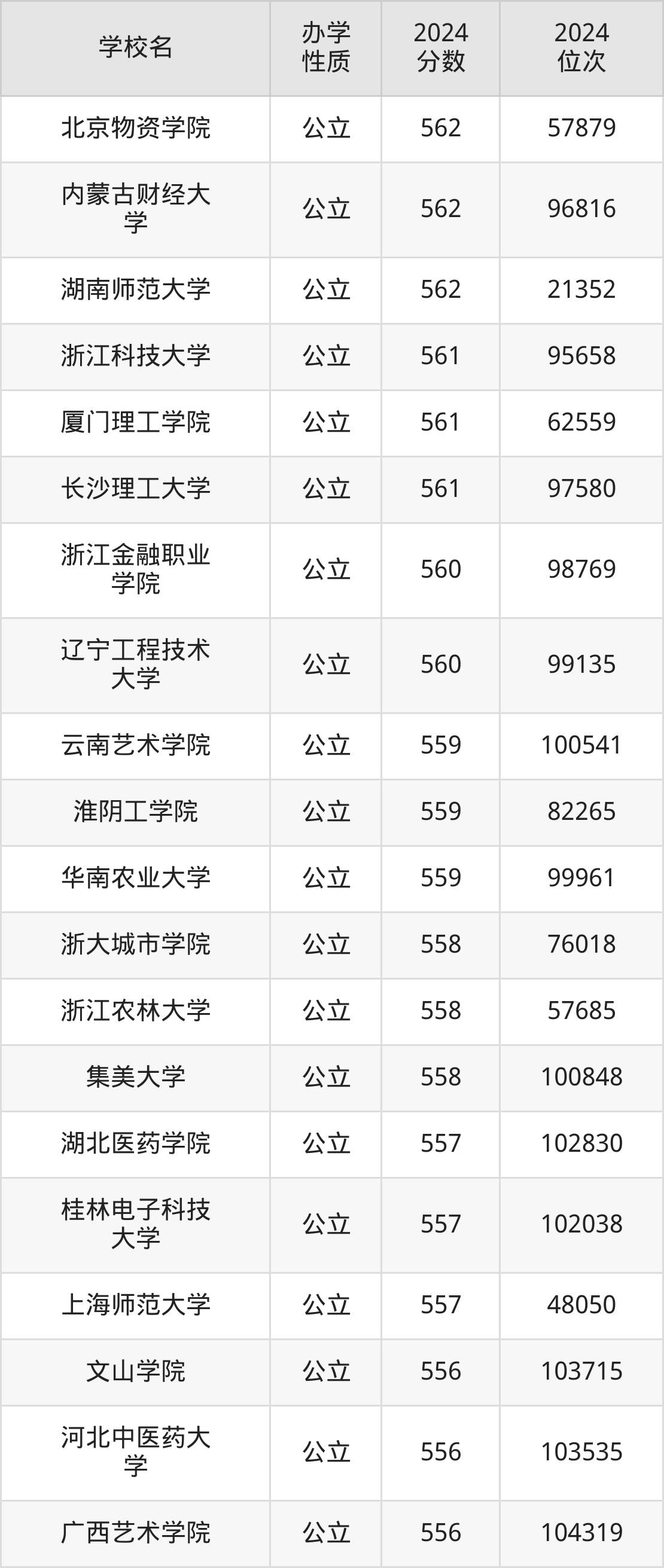2024年浙江560分考生能上青海大学、湖南师范大学、新疆大学3所211院校,具体录取分数线及位次为: