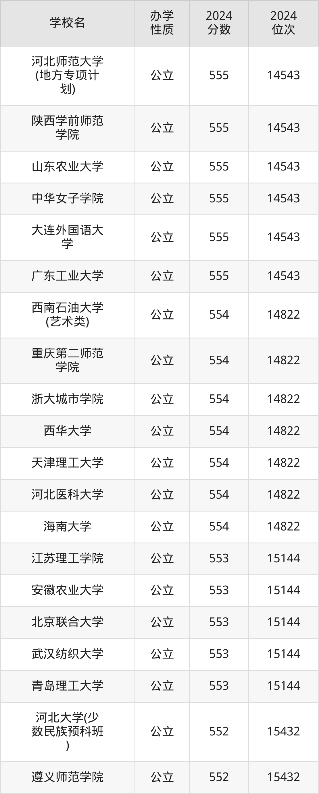 为了方便2025届考生了解自己能上哪些大学,本文也整理出了河北555分左右能上的所有大学名单,供2025年考生参考。
