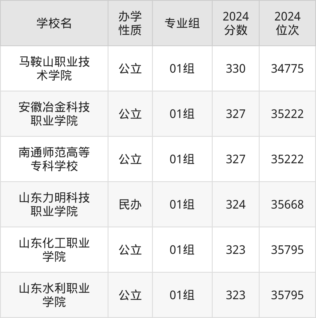 | 山东水利职业 学院 | 01组 | 323 | 35795 |
