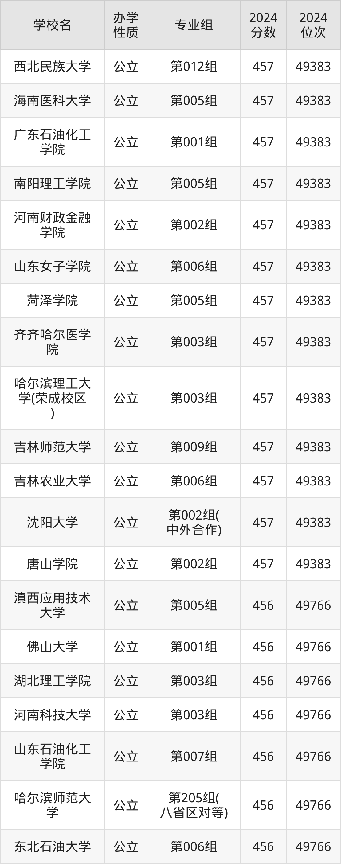 | 佳木斯大学( 少数民族预科 ) | 第002组 | 449 | 16669 |