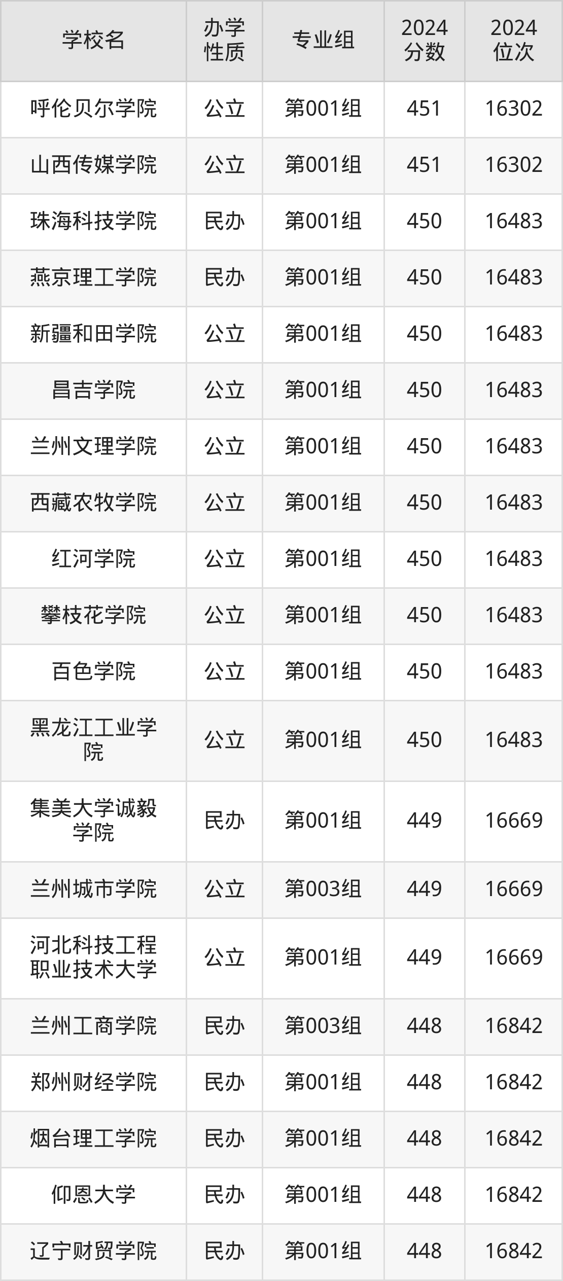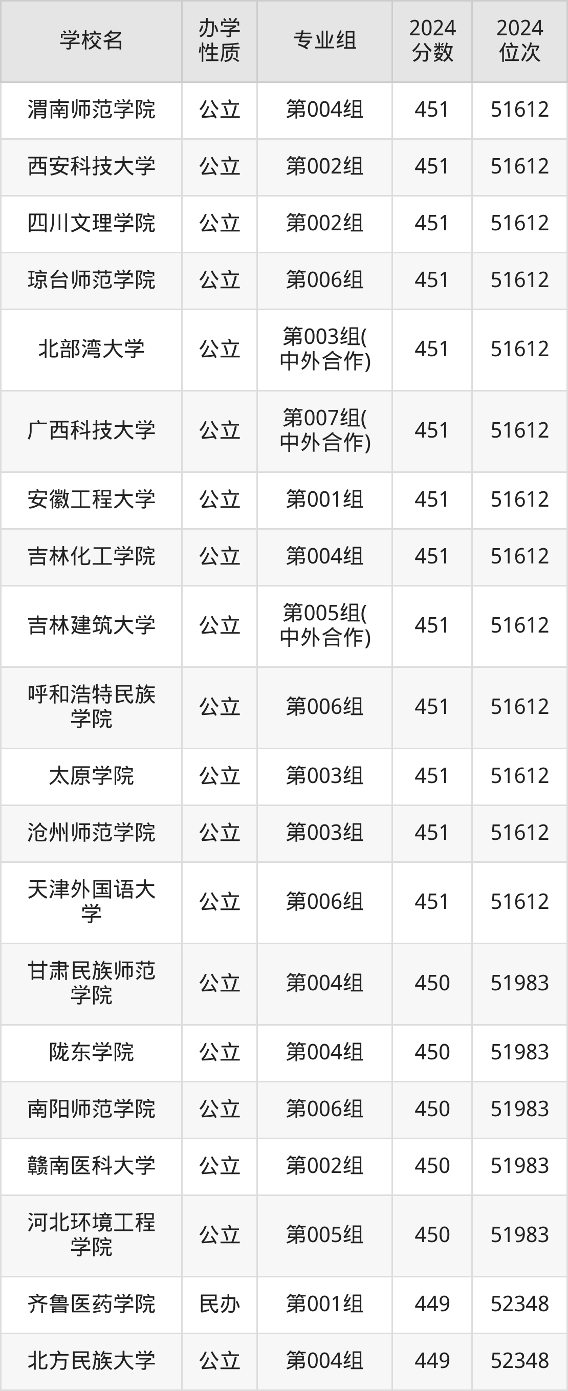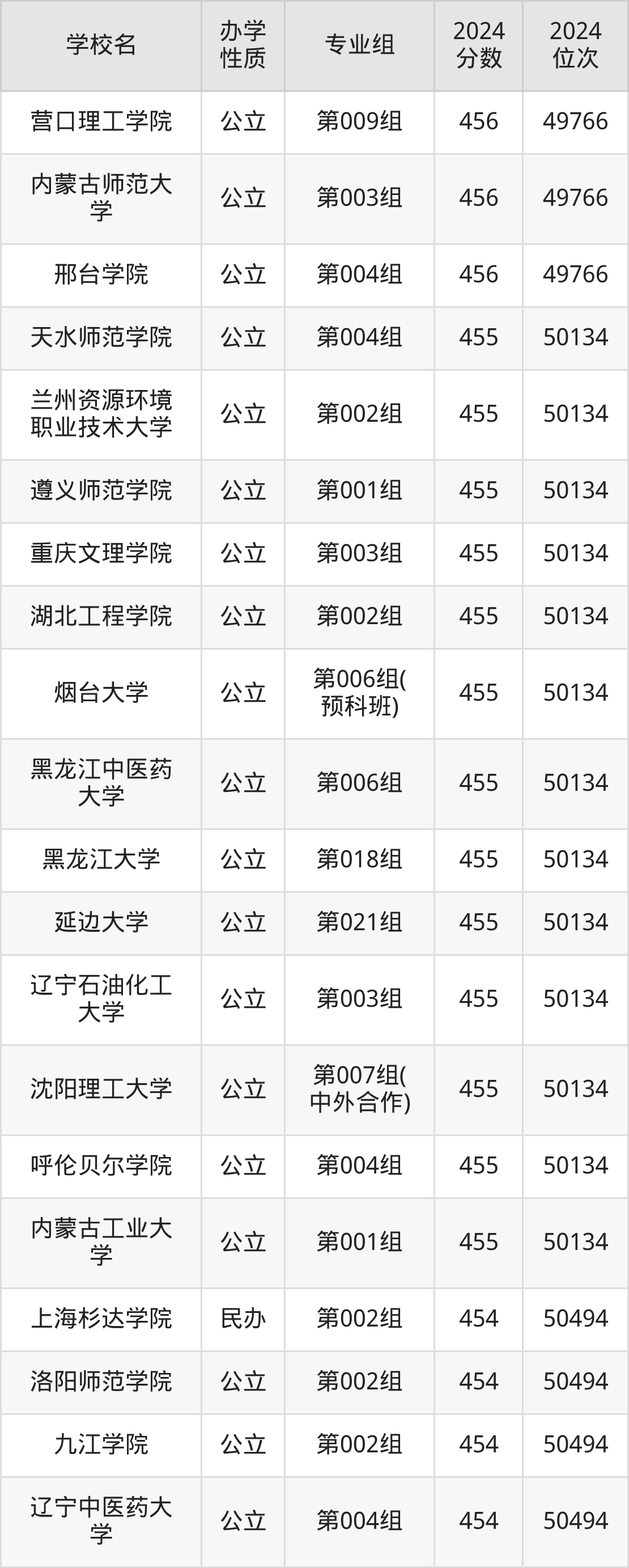 | 学校名 | 专业组 | 2024 分数 | 2024 位次 |
