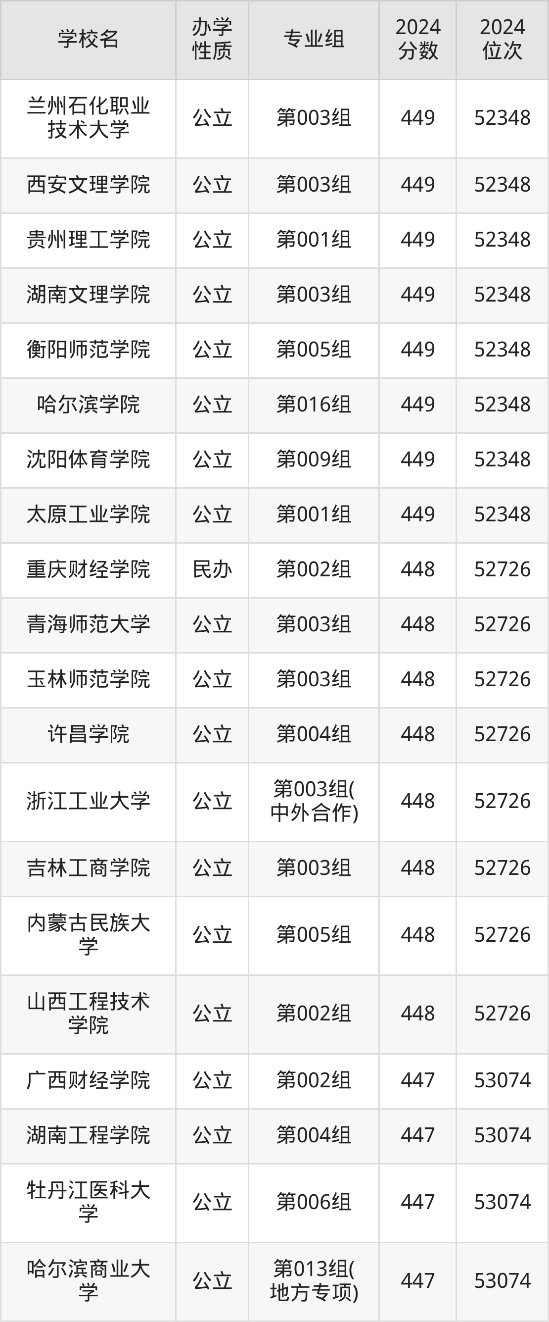 | 哈尔滨学院 | 第016组 | 449 | 52348 |