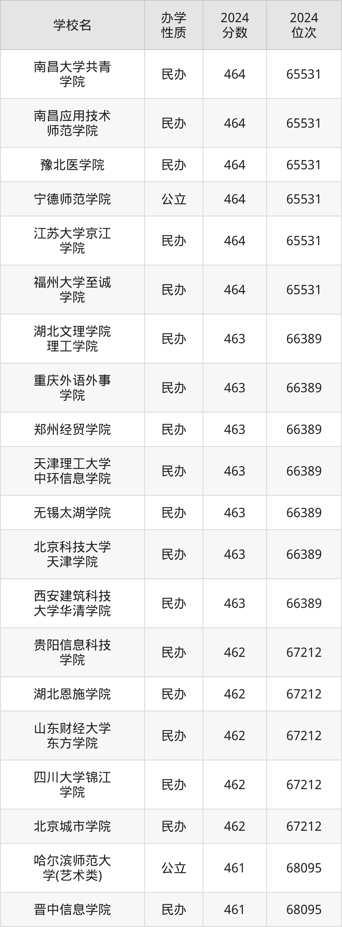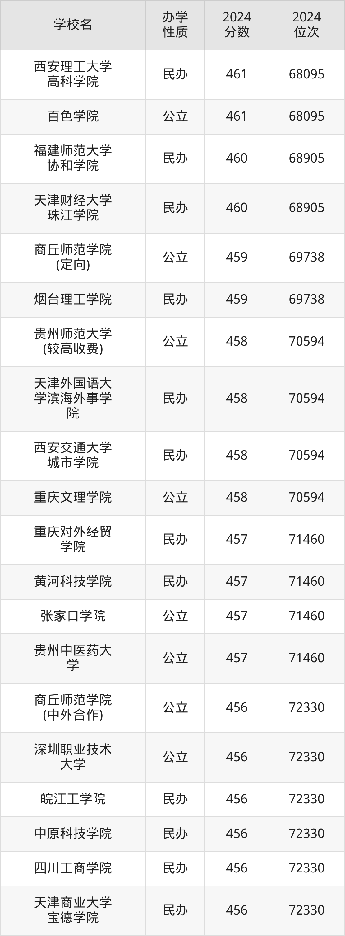 | 西安理工大学 高科学院 | 461 | 68095 |