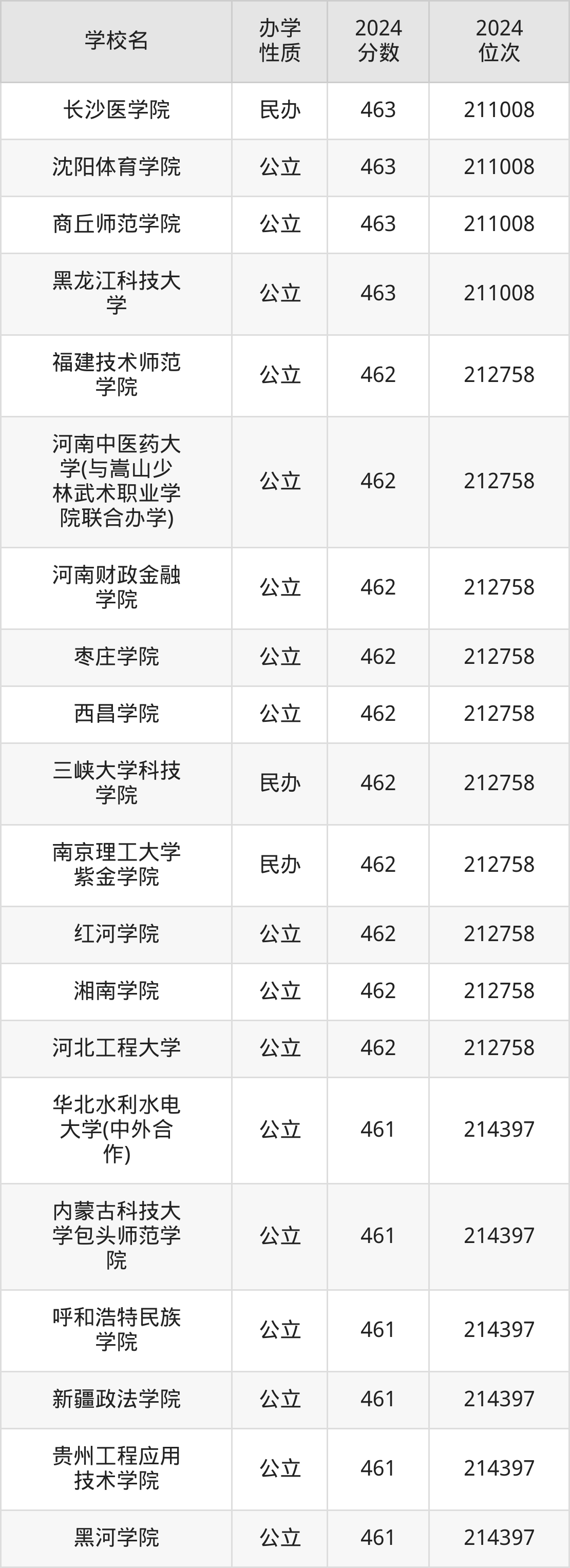 | 长沙理工大学 城南学院 | 463 | 211008 |