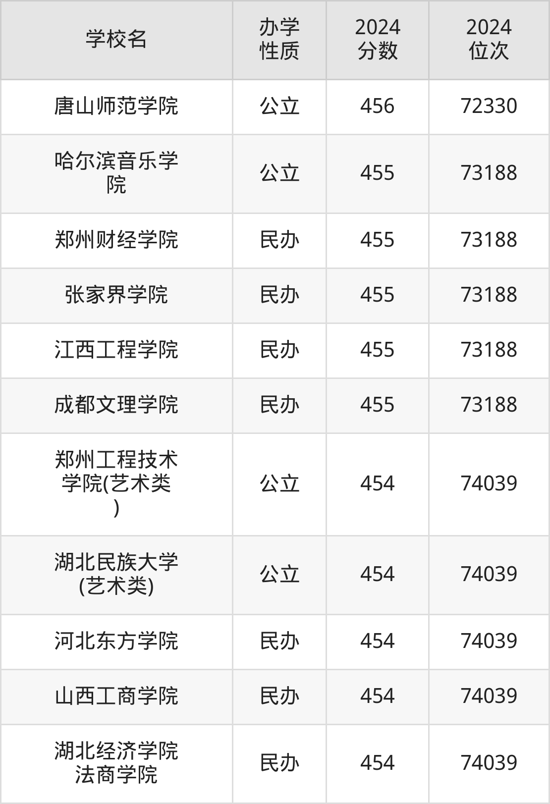| 郑州工程技术 学院(艺术类 ) | 454 | 74039 |