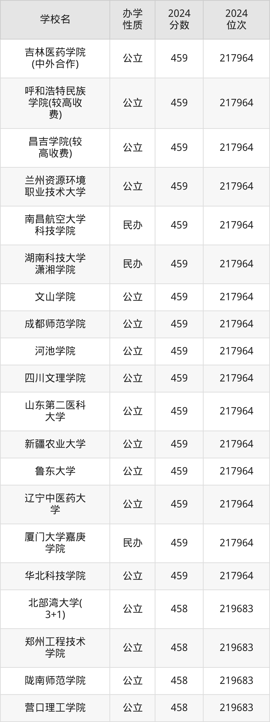 2024年河南文科459分考生能上南昌大学共青学院、南昌应用技术师范学院、豫北医学院、宁德师范学院、江苏大学京江学院等49所二本院校,具体录取分数线及位次为: