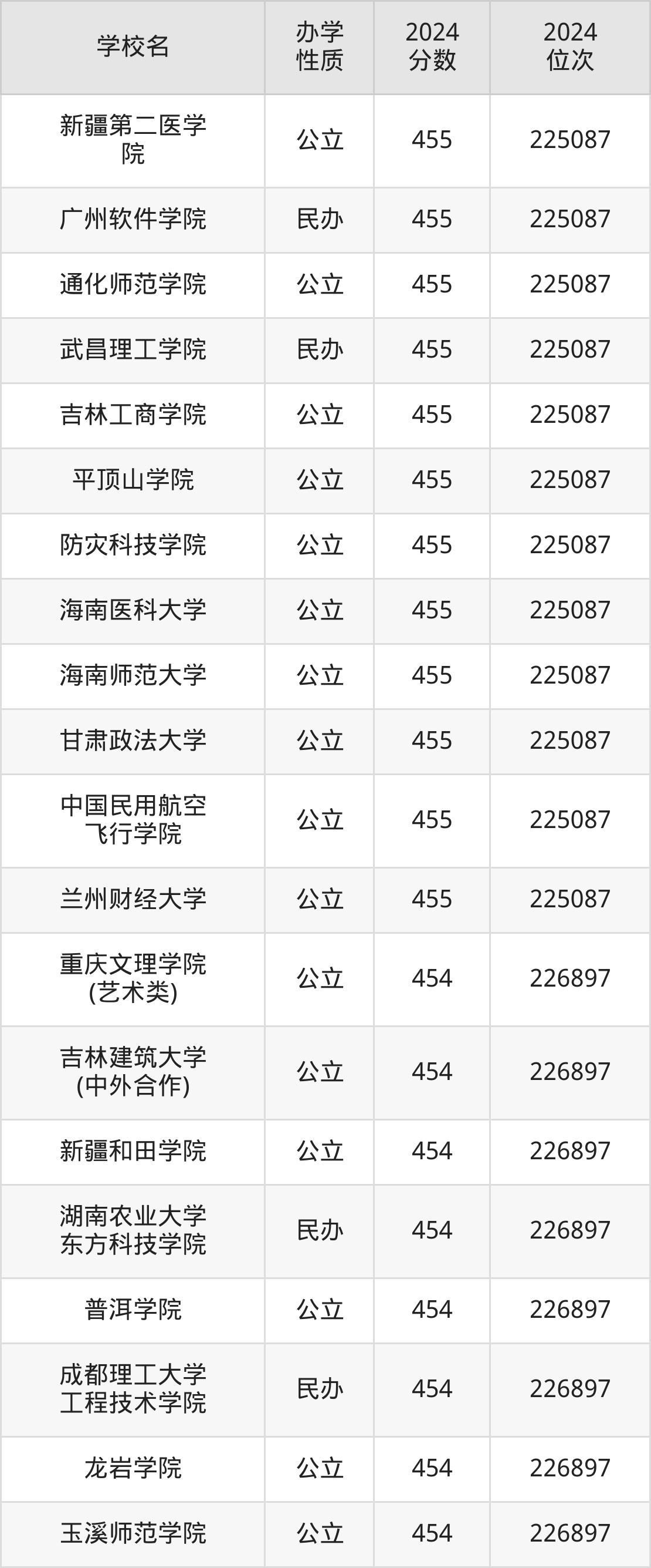 | 重庆文理学院 (艺术类) | 454 | 226897 |