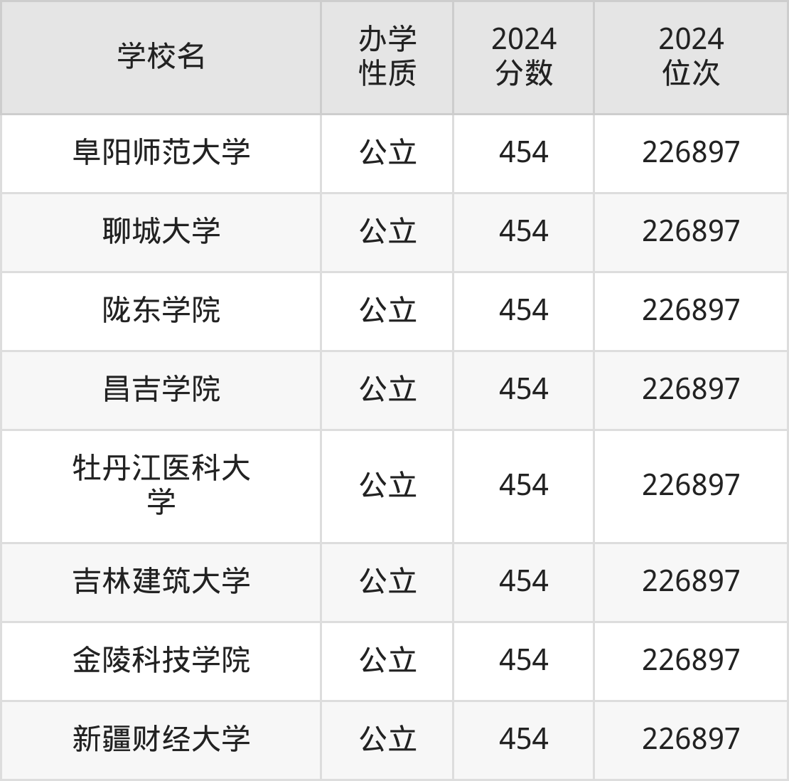 | 吉林建筑大学 (中外合作) | 454 | 226897 |