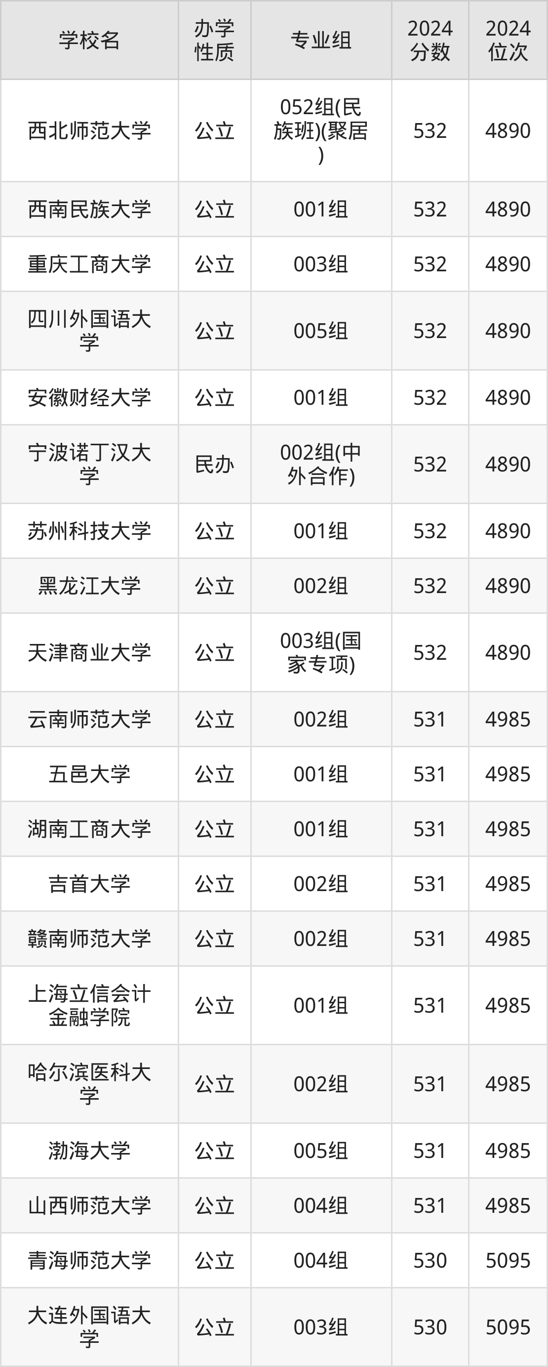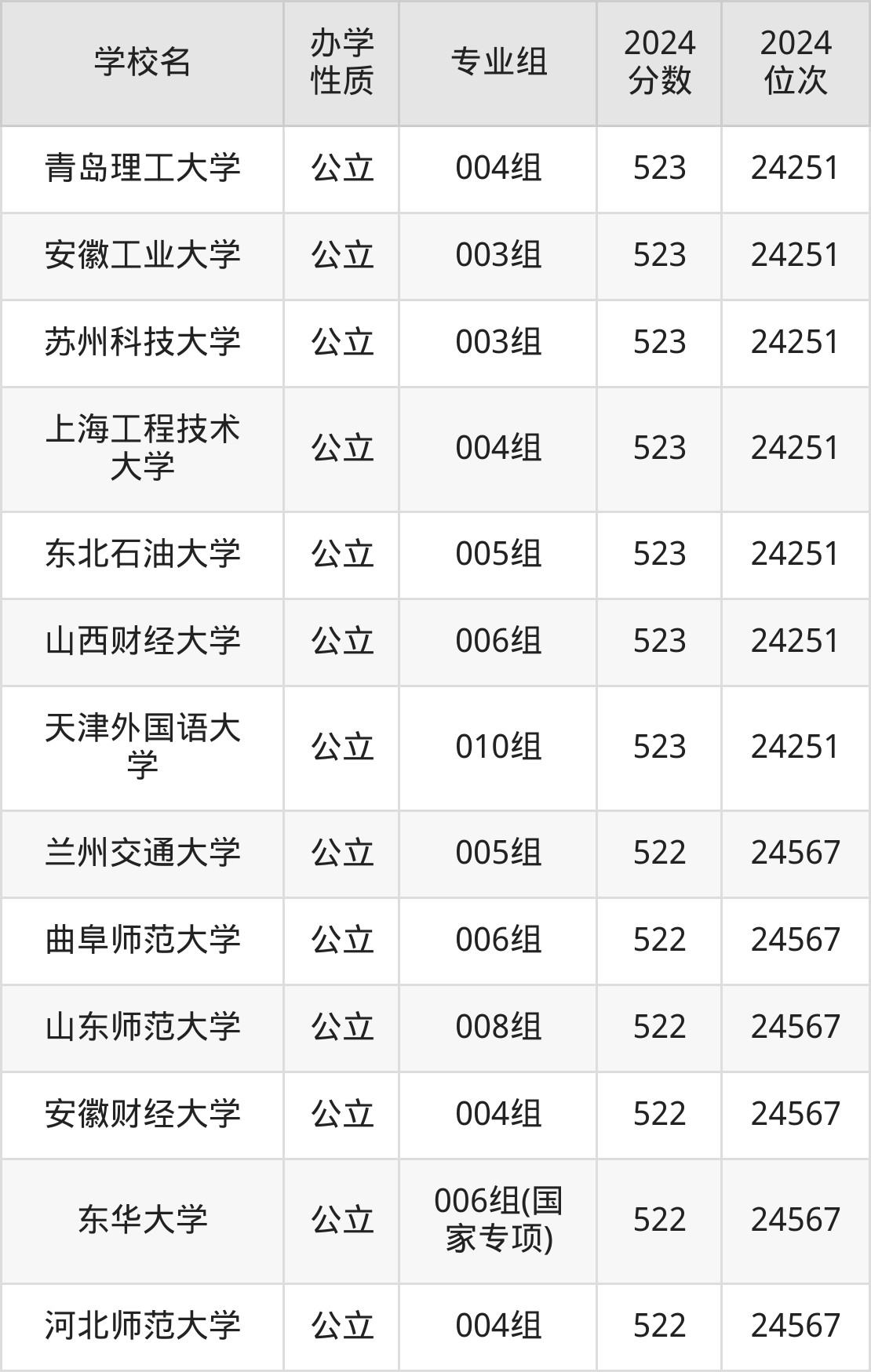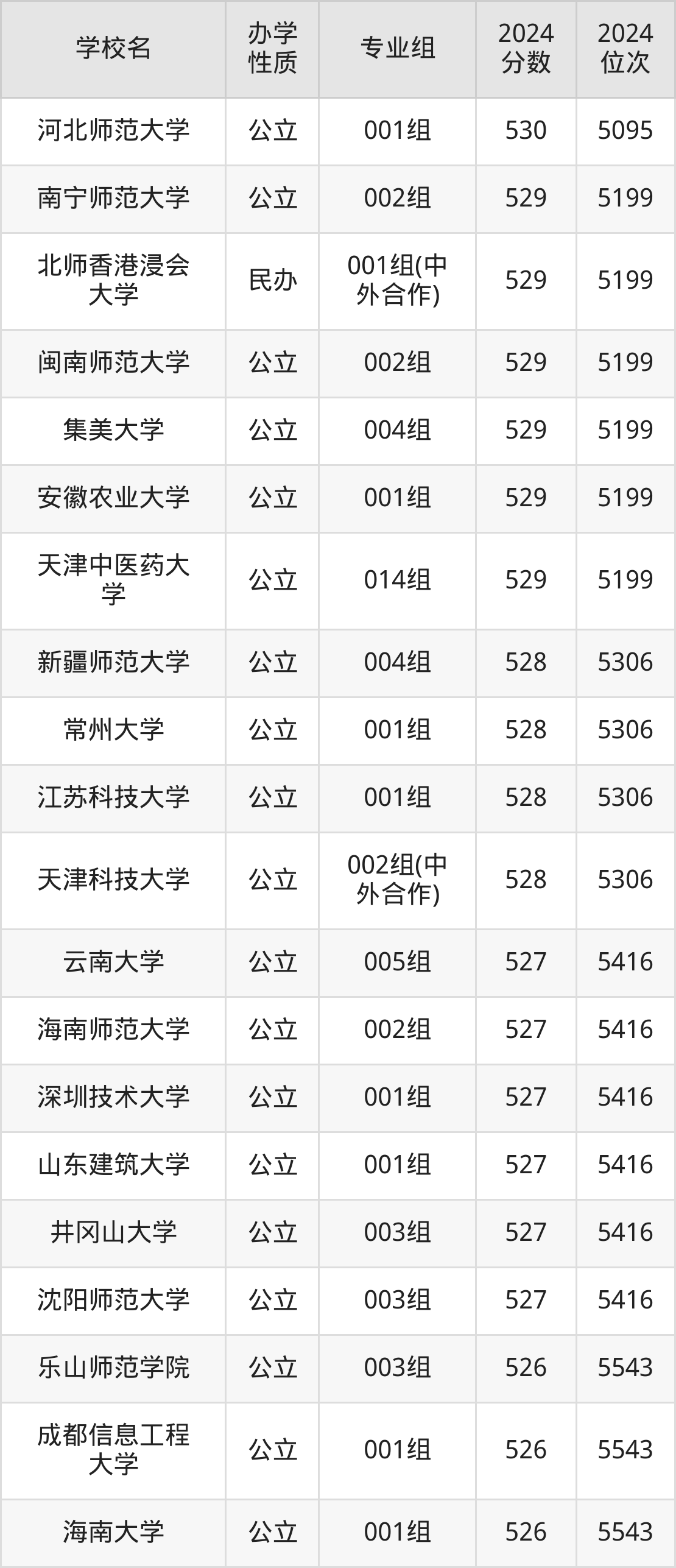 | 学校名 | 专业组 | 2024 分数 | 2024 位次 |