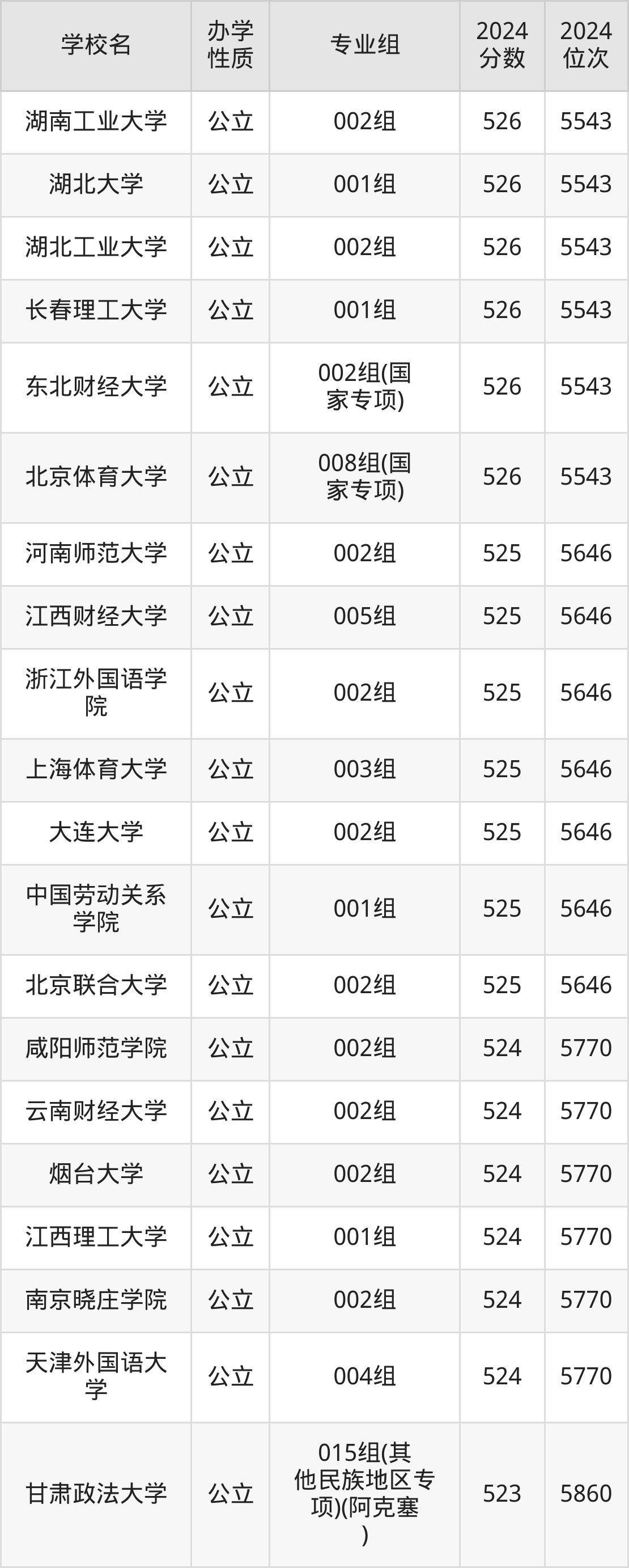 | 东北财经大学 | 002组(国 家专项) | 526 | 5543 |