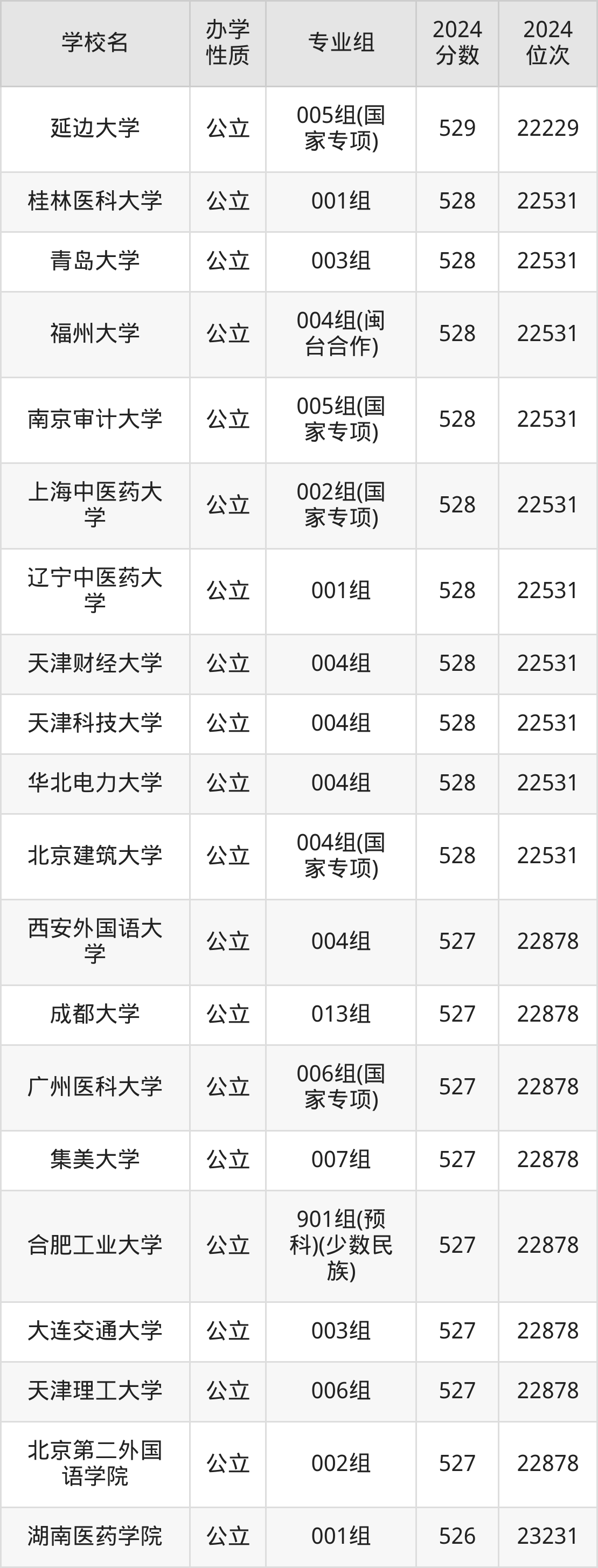 | 天津中医药大 学 | 901组(预 科)(少数民 族) | 528 | 22531 |