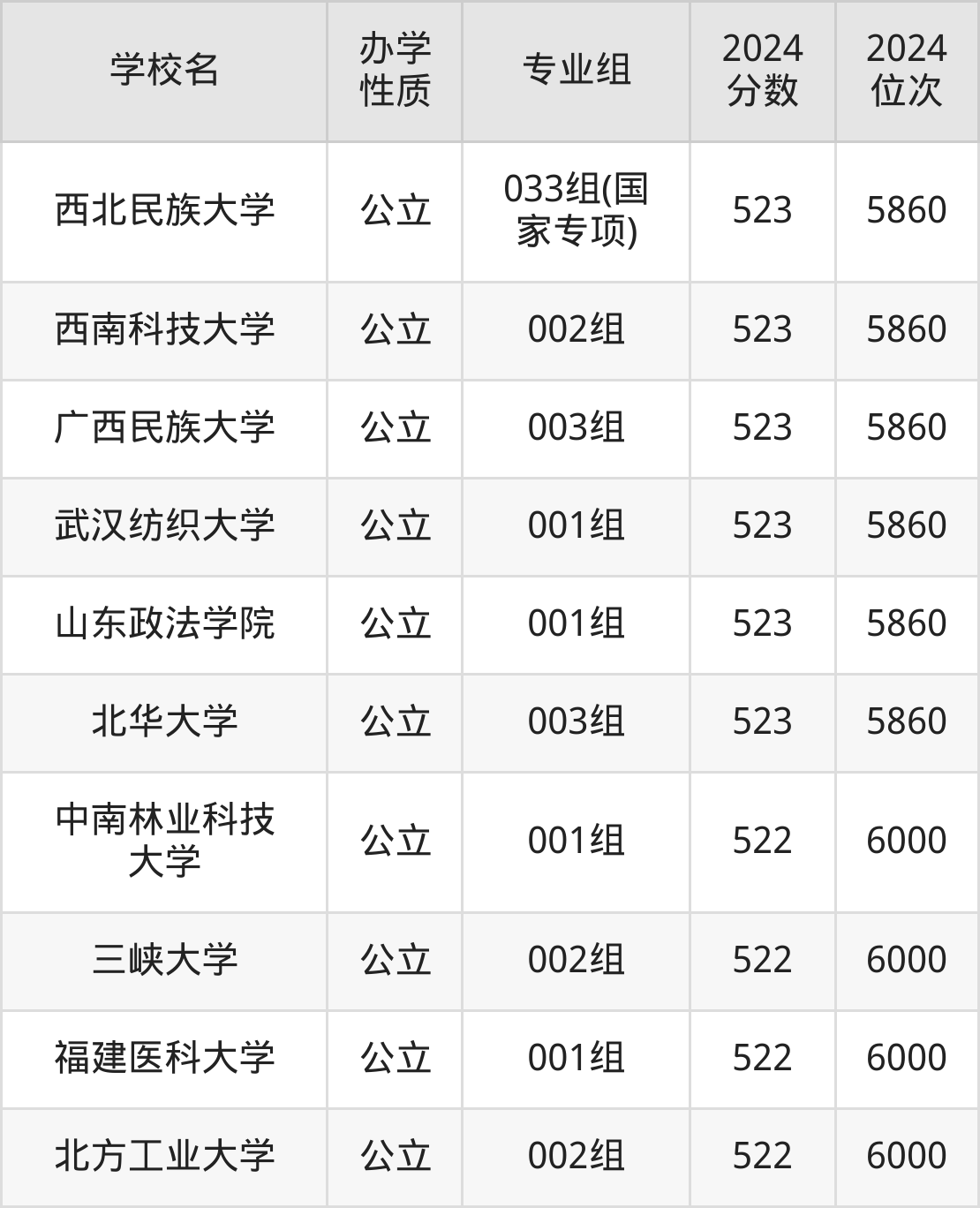 | 西南民族大学 | 006组(国 家专项) | 523 | 5860 |