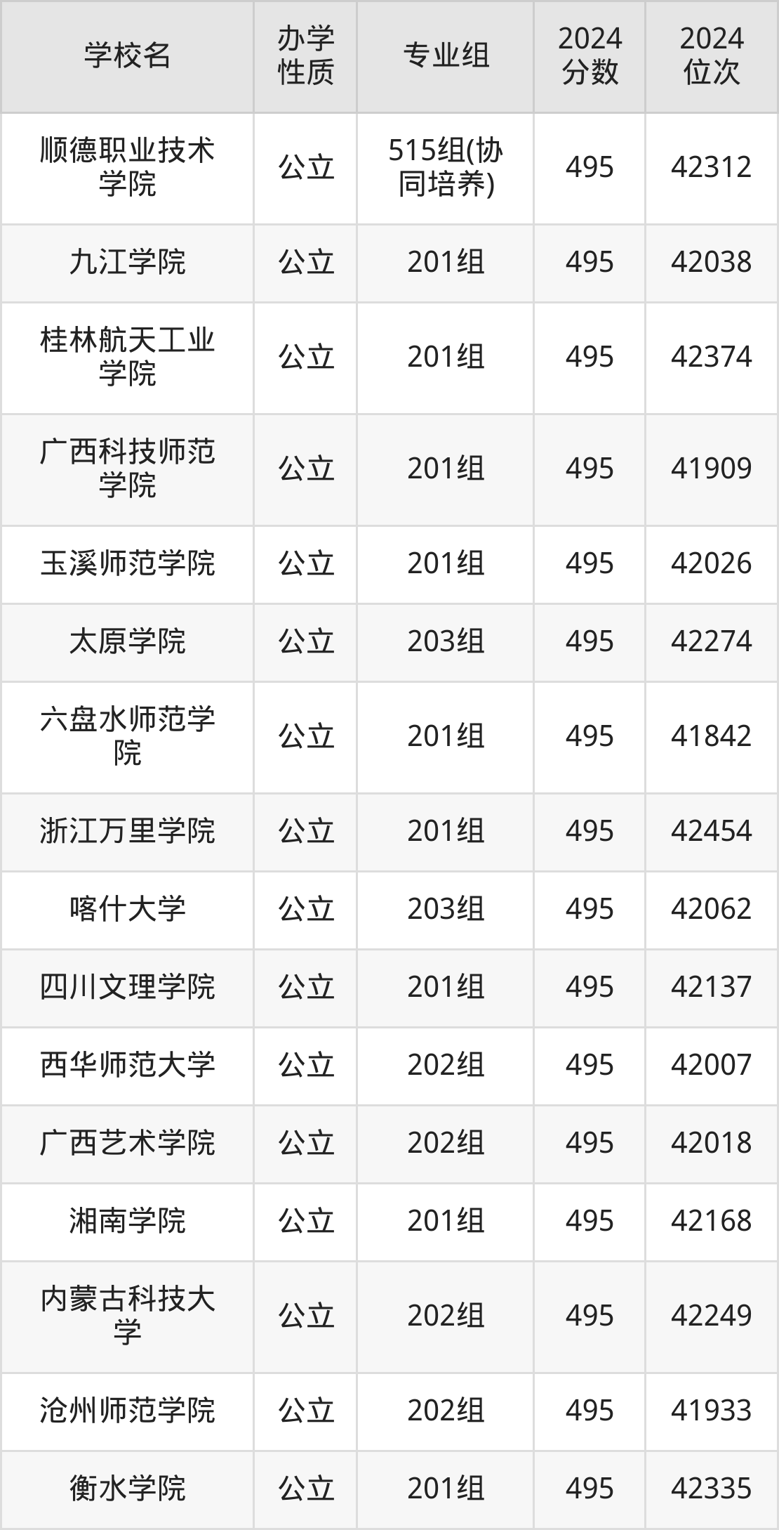 广东500分左右的考生可以上广东第二师范学院、赣东学院、南京特殊教育师范学院等院校,刚好在500分的院校有河北科技工程职业技术大学、滇西应用技术大学、贵州师范学院等。