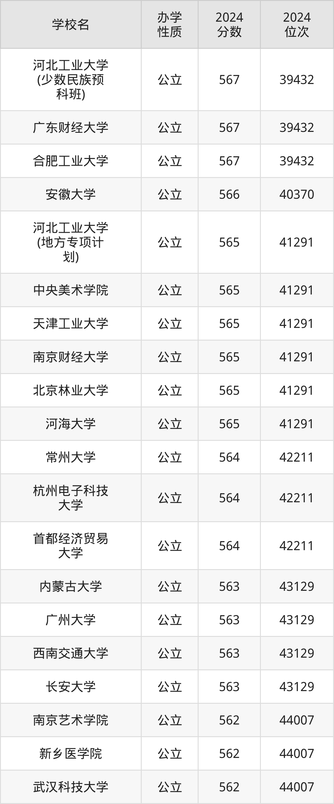 为了方便2025届考生了解自己能上哪些大学,本文也整理出了河北562分左右能上的所有大学名单,供2025年考生参考。
