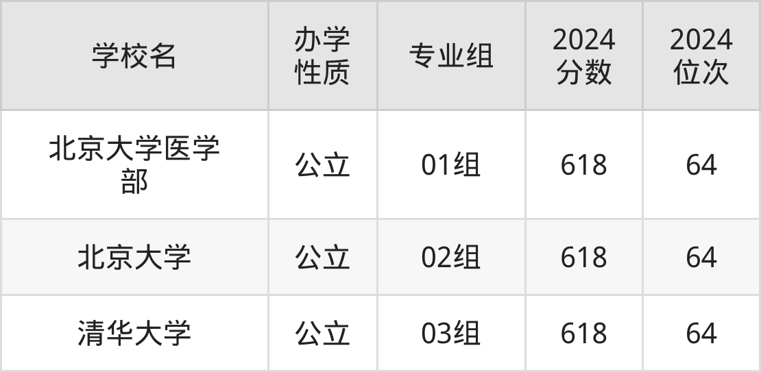 | 北京大学医学 部 | 01组 | 618 | 64 |