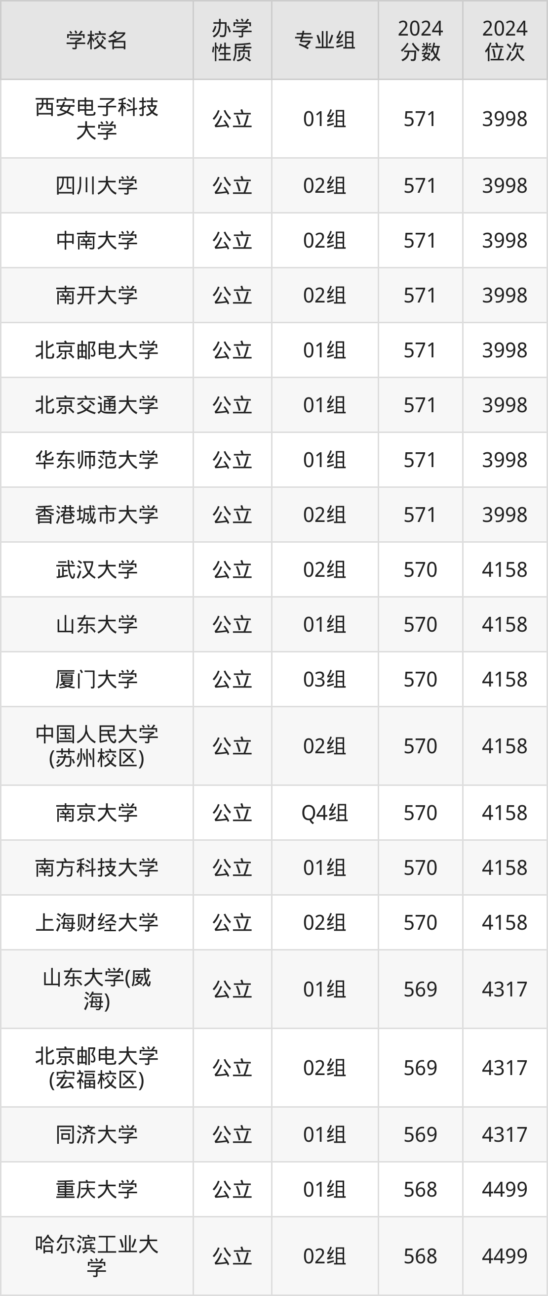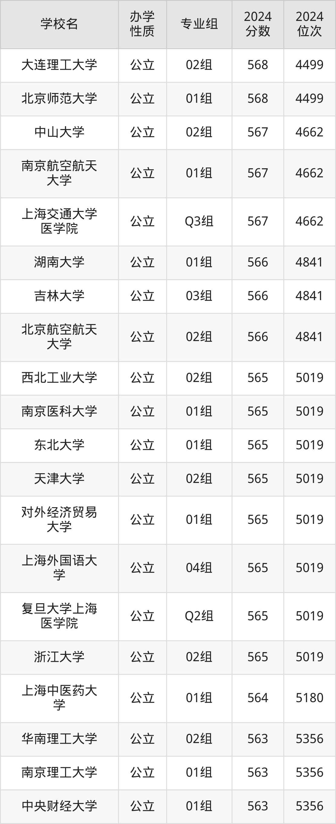 | 学校名 | 专业组 | 2024 分数 | 2024 位次 |