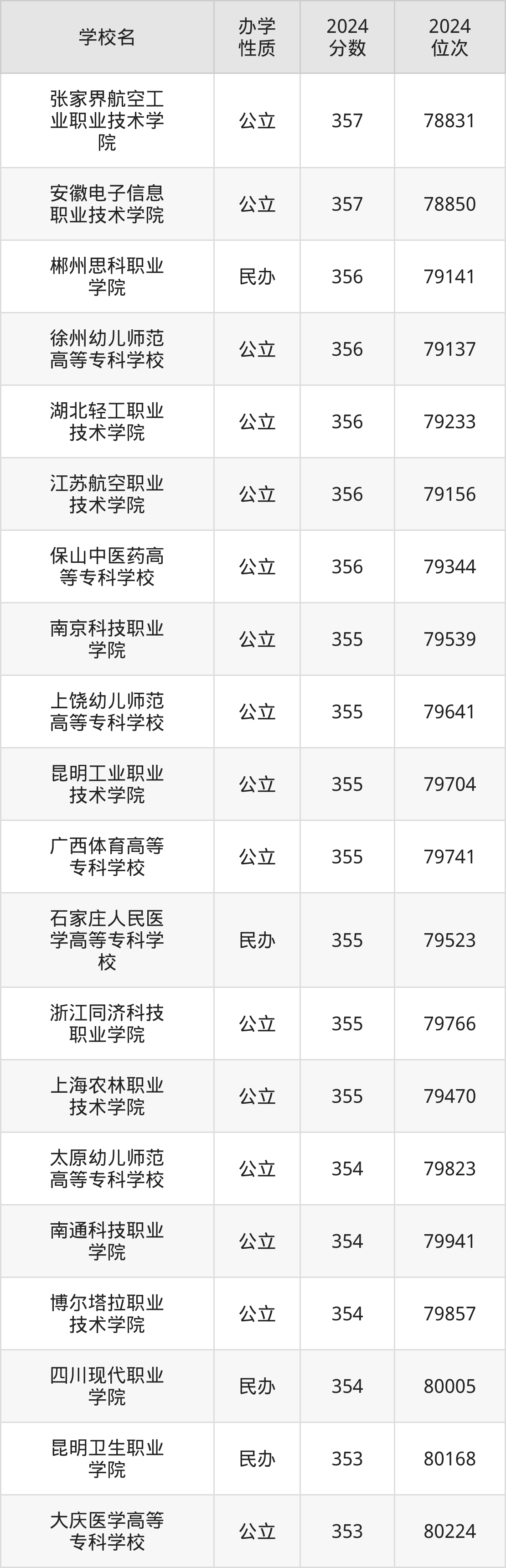 | 浙江同济科技 职业学院 | 355 | 79766 |